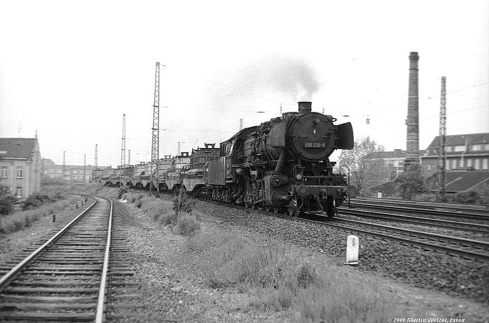 km 0,9 in Krefeld Hbf - 050 232 führt einen leeren Brammenzug von Krefeld Stahlwerk nach Oberhausen-West