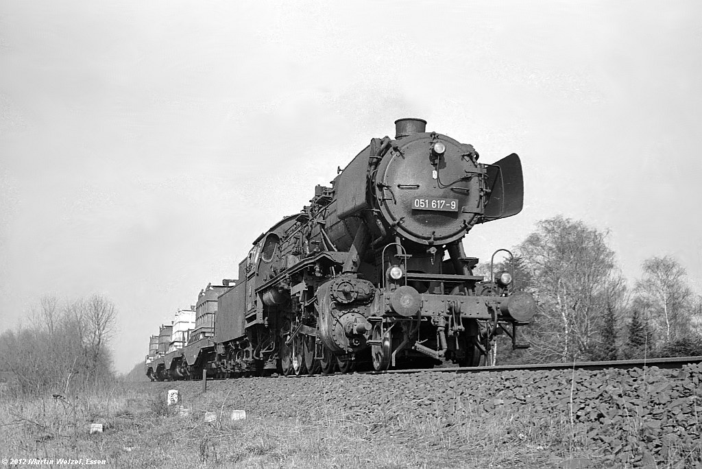 km 2,9 bei Krefeld Stahlwerk - 051 617 führt einen Brammenzug nach Krefeld Stahlwerk