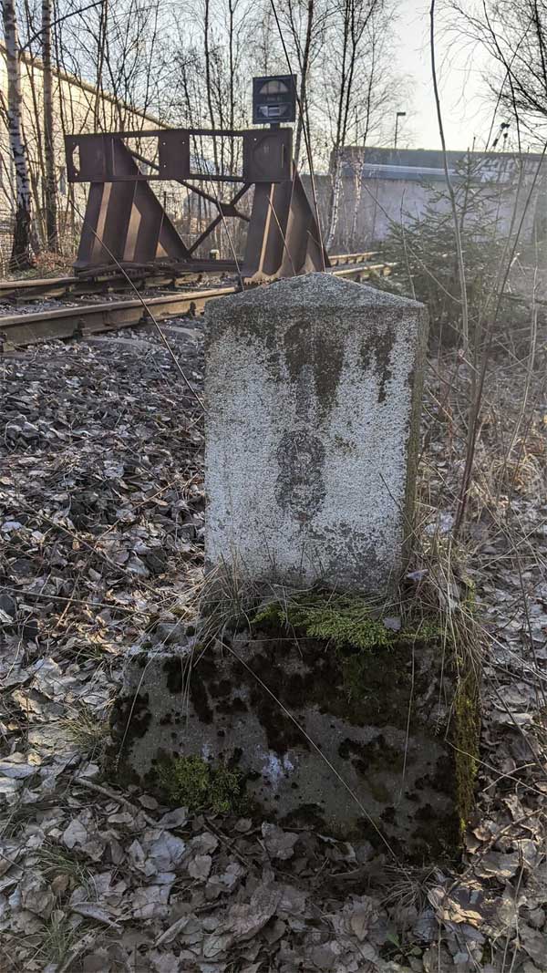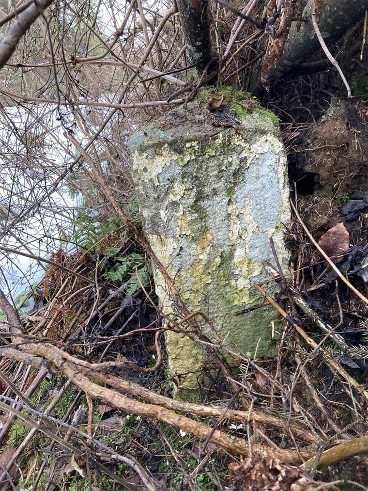 Ein zwar kaum zu entziffernder Kilometerstein, aber ein Indiz für die alte Trassenführung vor Bau der Talsperre, gefunden am Fuße der Talsperre.