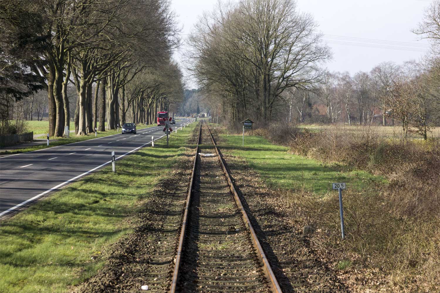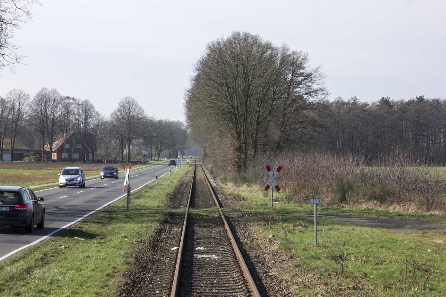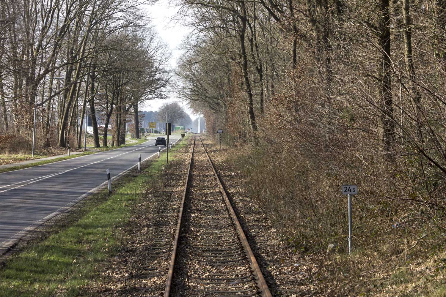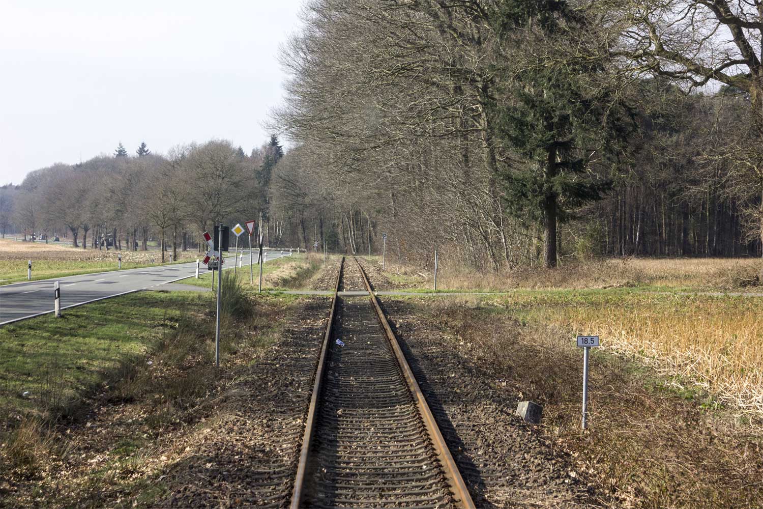 km 24,5 (Stein und Tafel) zwischen Ladestelle Werlte und Werlte - Blick Richtung Lathen