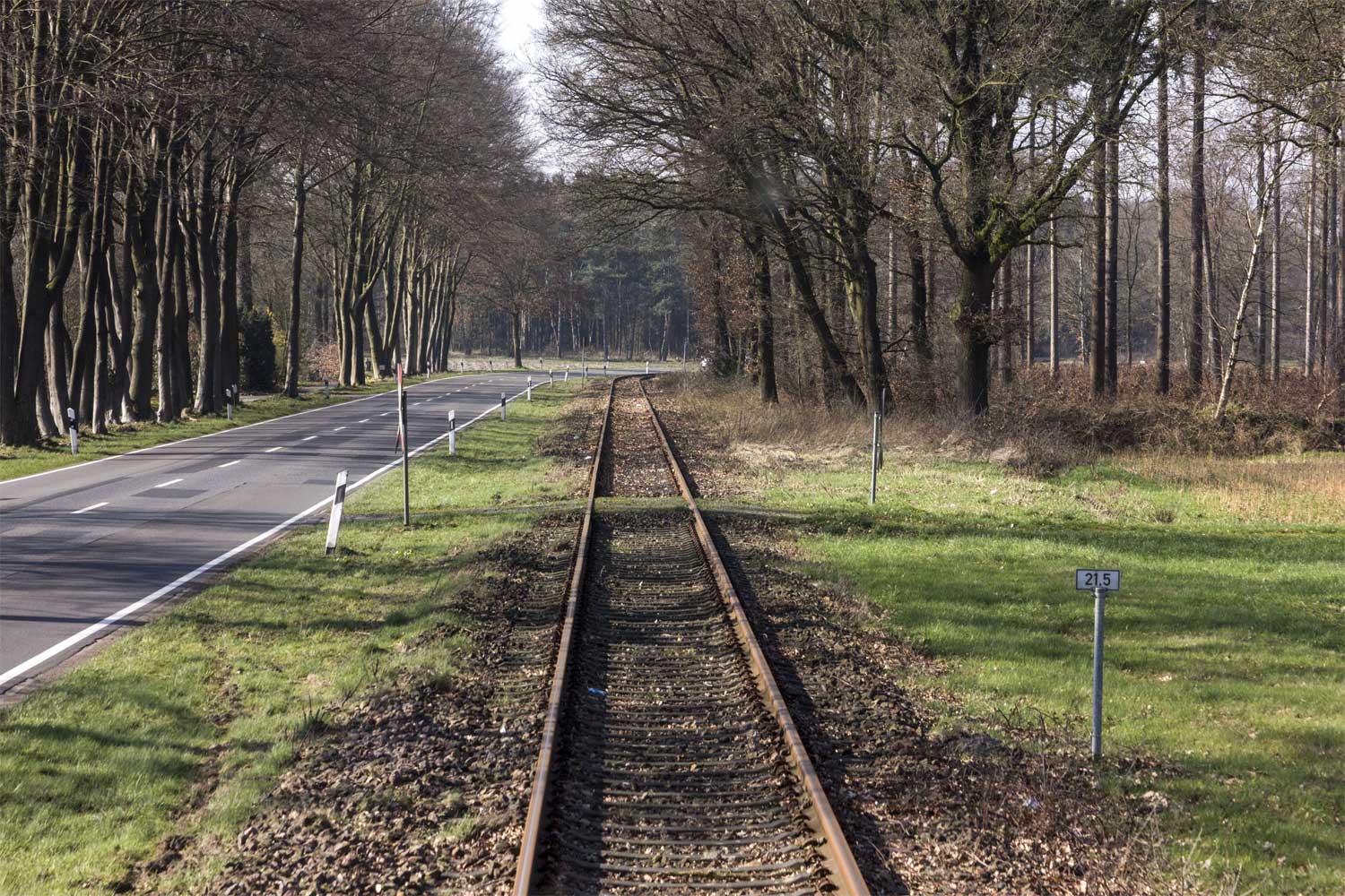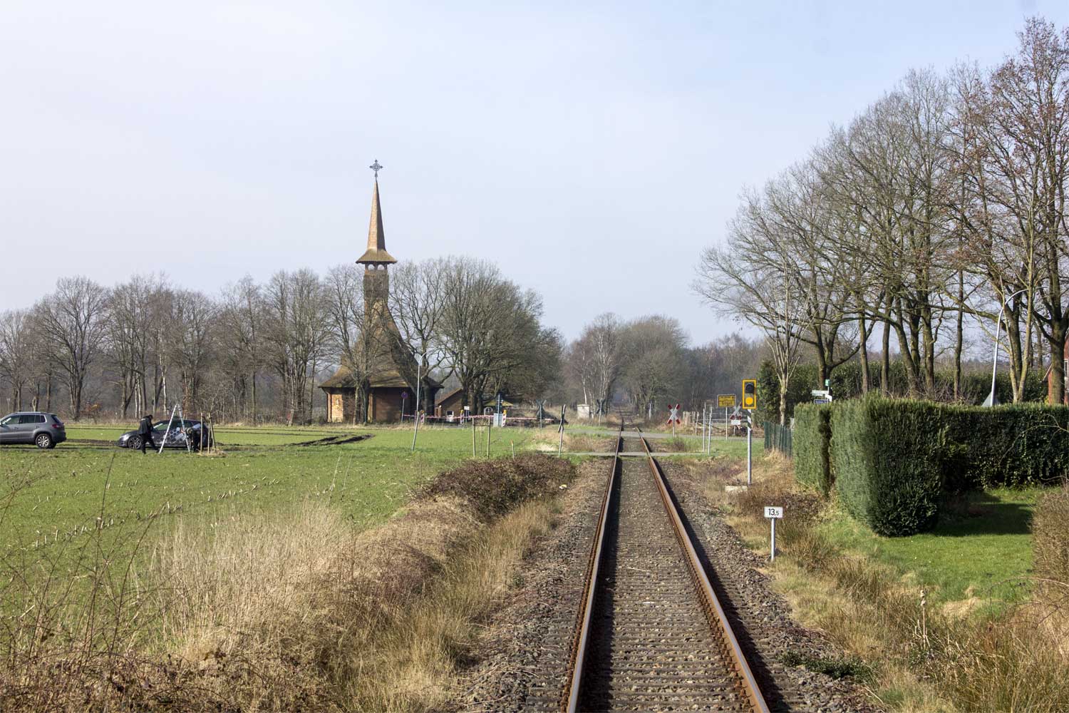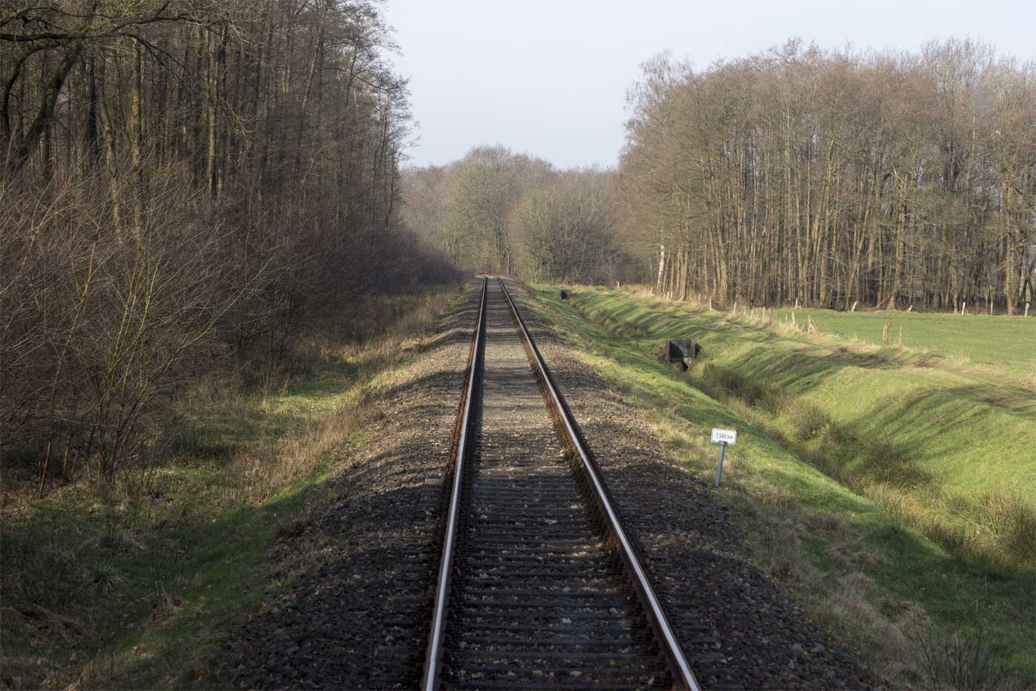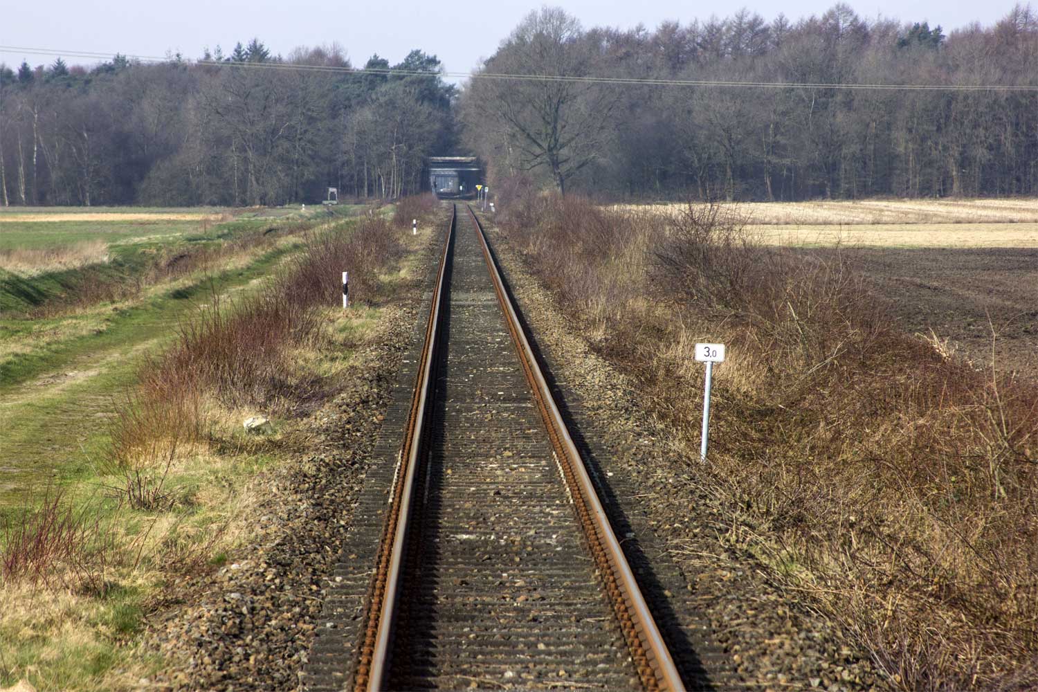 km 24,5 (Stein und Tafel) zwischen Ladestelle Werlte und Werlte - Blick Richtung Lathen