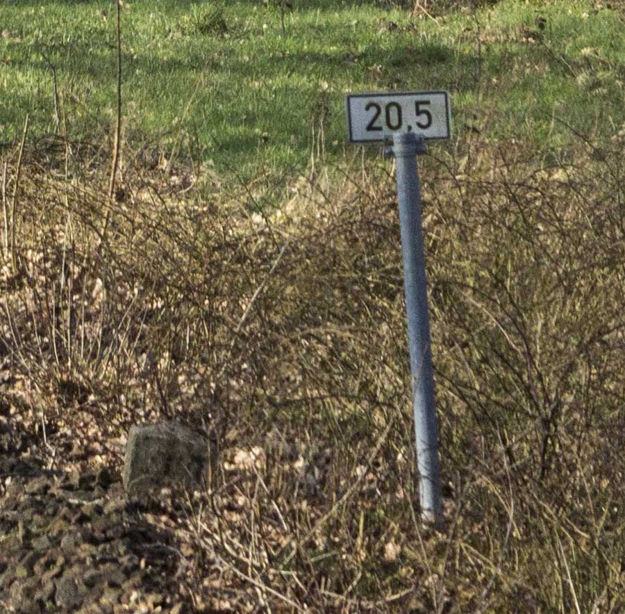km 20,5 (Stein und Tafel) zwischen Ostenwalde und Ladestelle Werlte - Detail