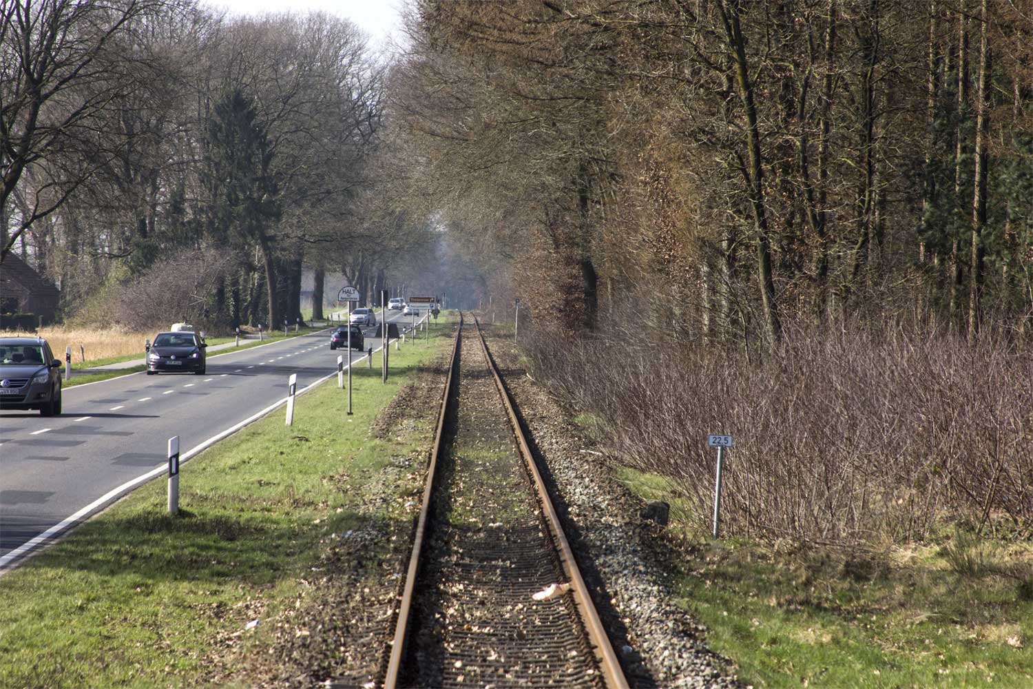 km 22,5 (Stein und Tafel) zwischen Ostenwalde und Ladestelle Werlte - Blick Richtung Lathen