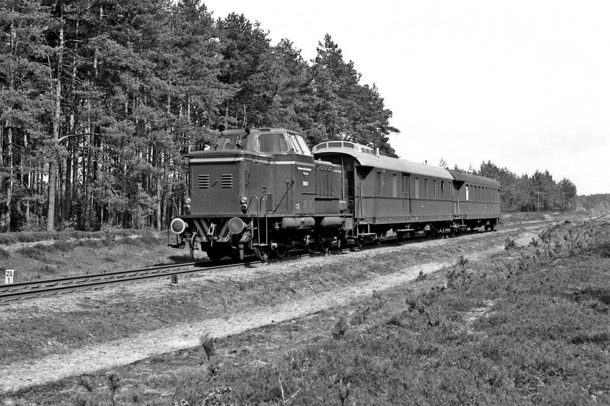 km 20,1 zwischen Neu Neetze und Bleckede - Lok 100 031 mit den Wagen 1990 und 2002