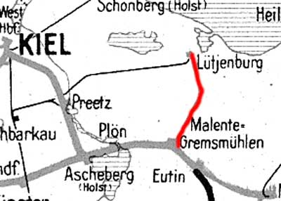 Malente-Gremsmühlen 0,0 km 115,82 der Strecke [Hamburg-Altona 0,0 (alt)/0,7 (neu)] - Neumünster 74,66 - Ascheberg (Holst) 100,11 - Neustadt (Holst) 136,75