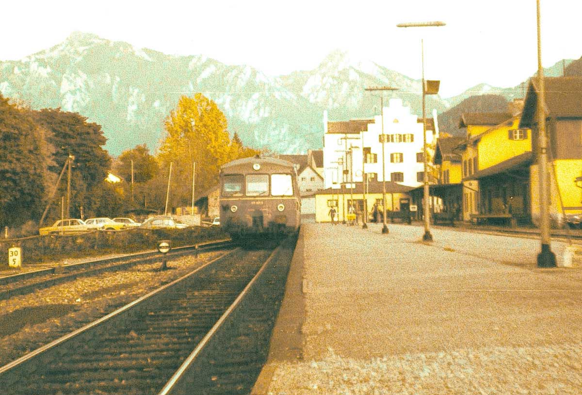 Die Lokalbahn Aktien-Gesellschaft baute die Verlängerung 1889 nach Füssen. Die Kilometrierung begann in Marktoberdorf.