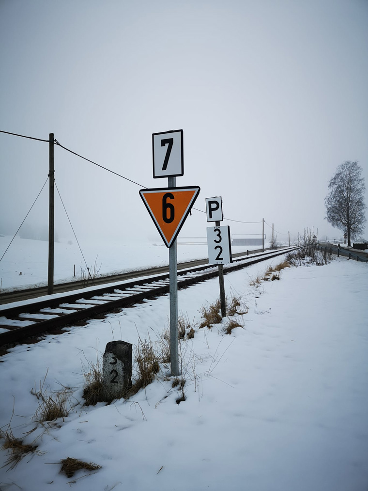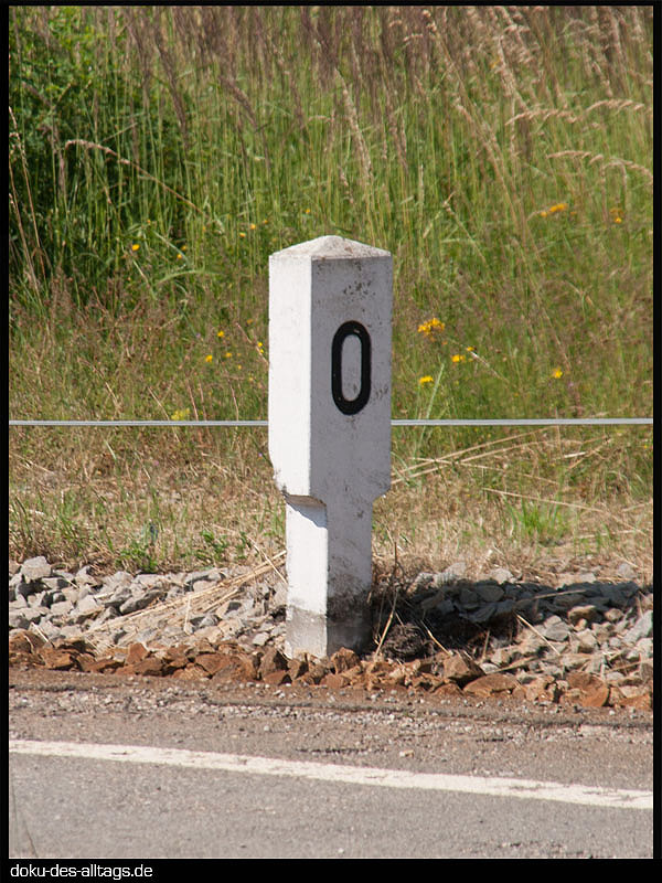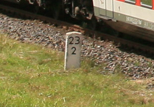 km 25,8 (Stein und Tafel) - Ende der Streckenverschwenkung