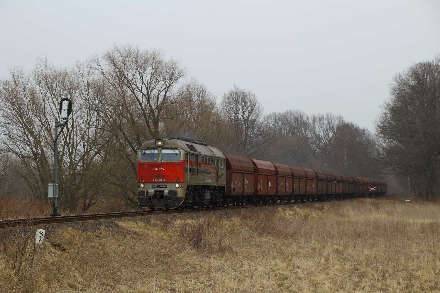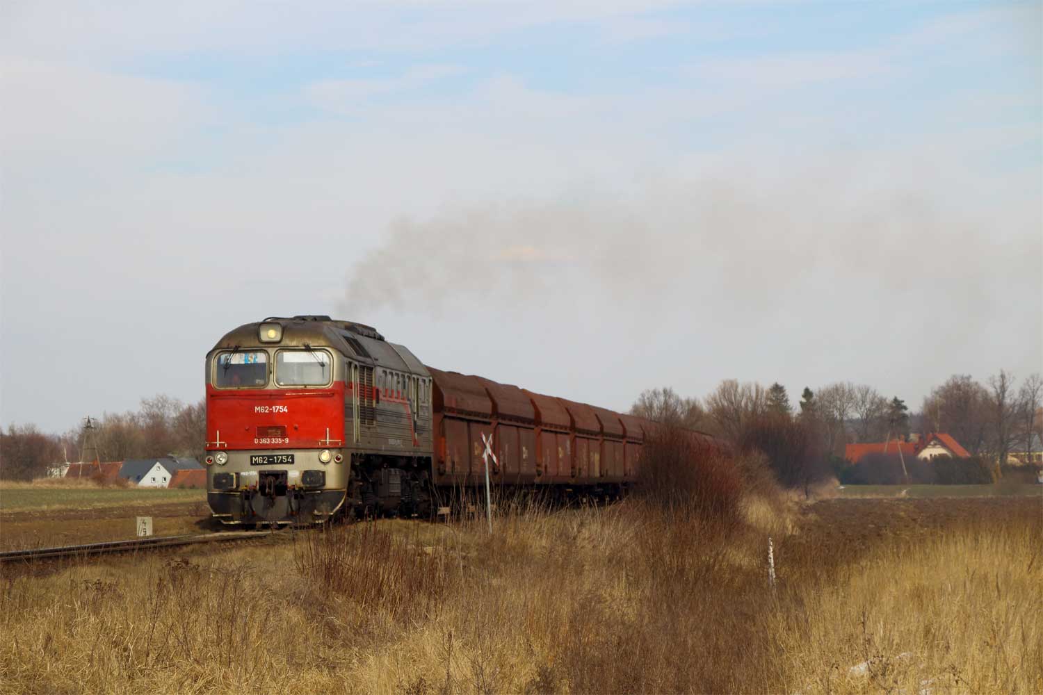 M62-1754 mit Leerkohlezug (CZ) - Zawidow (Seidenberg) - Turoszów (Türchau)