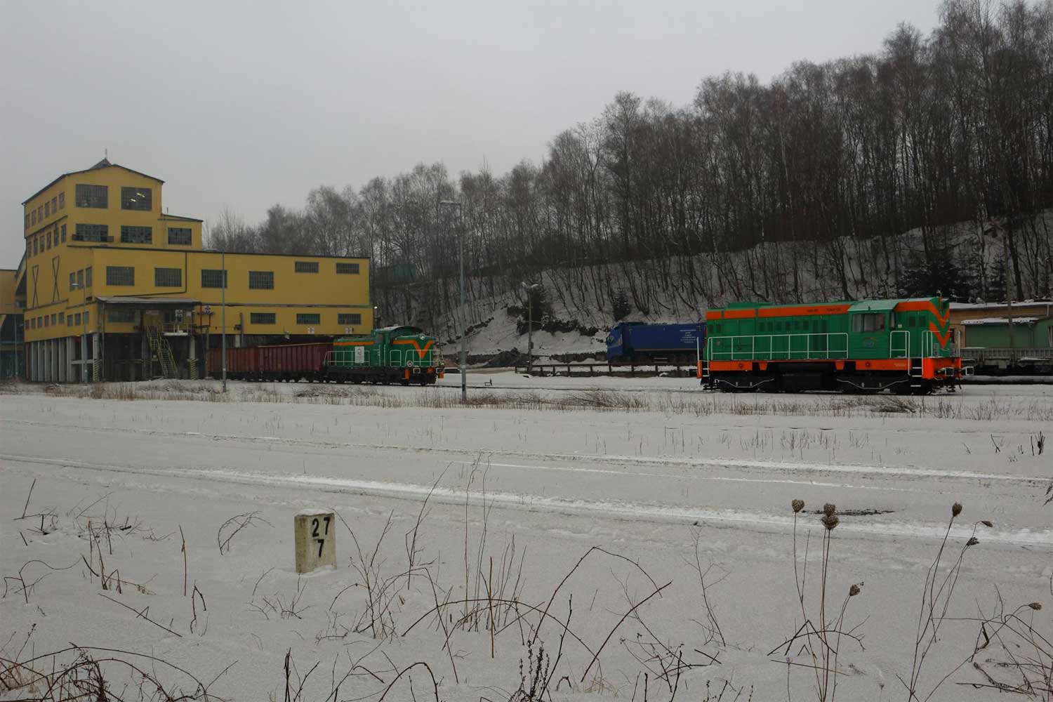 km 27,7 in Turoszów (Türchau) - PGE T448p-135 und SM42-2667