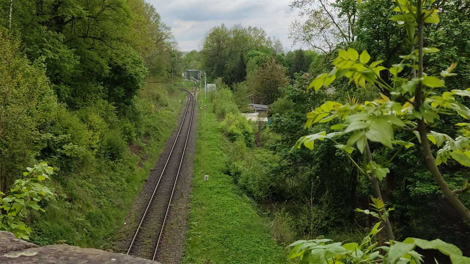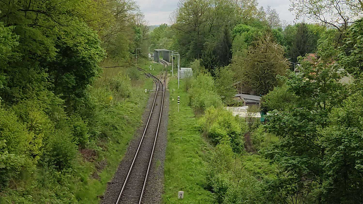 Im Hintergrund kam die Strecke von rechts aus Mikułowa (Nikolausdorf).