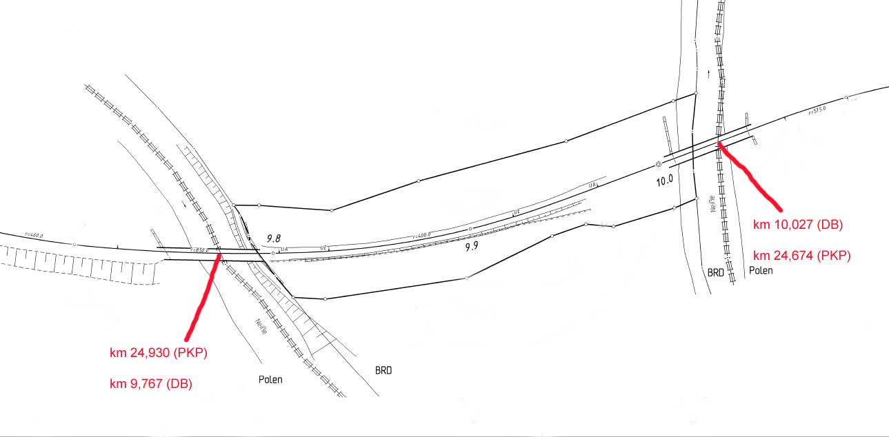 26,117 | km 0,0 der Strecke Abzw Trzciniec Zgorzelecki 0,031 - Staatsgrenze Polen/Deurschland 0,200 - (Zittau) | |