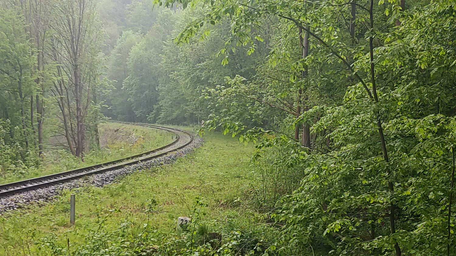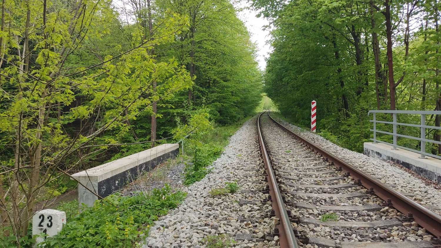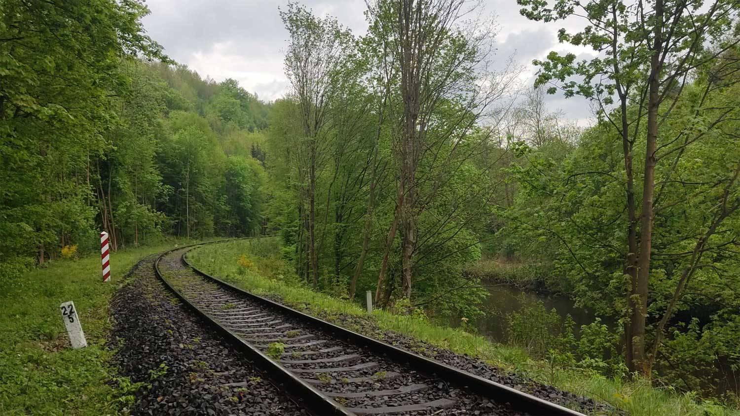 km 25,7 am Abzw Trzciniec Zgorzelecki (Rohnau) - Blick Richtung Bogatynia (Reichenau in Sachsen)