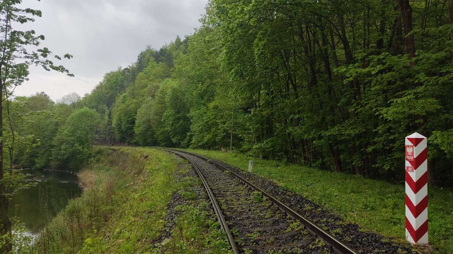 km 23,1 zwischen Bratków Zgorzelecki [Marienthal (Sachs)] und Abzw Trzciniec Zgorzelecki (Rohnau) - Blick Richtung Bogatynia (Reichenau in Sachsen)