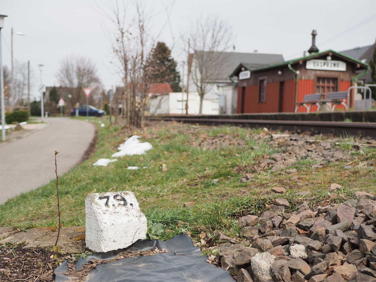 km 12,14 der Strecke Limbach (Sachs) 0,28 - Kändler 1,52 - Streckenunterbrechung - Abzw Schützenhaus 8,47 - Wüstenbrand 12,14 (LWd)