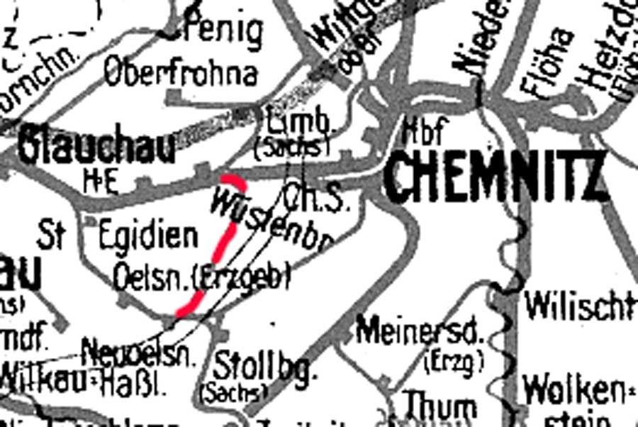 Wüstenbrand 12,99 km 94,32 der Strecke Dresden Hbf 0,005 -Chemnitz Hbf 79,616 - Zwickau (Sachs) Hbf 128,350- Abzw Werdau Bogendreieck (Neumarker Spitze)136,256 (6258)