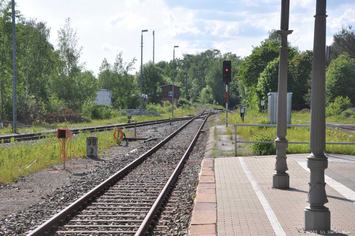 Neustadt (Sachs) -0,01 km 36,25 der Strecke Bautzen -0,36 - Streckenunterbrechung - Wilthen 13,98 - Neukirch (Laus) West 23,37 - Neustadt (Sa) 36,25 - Sebnitz (Sa) 48,76 - Bad Schandau 64,19 (6216)