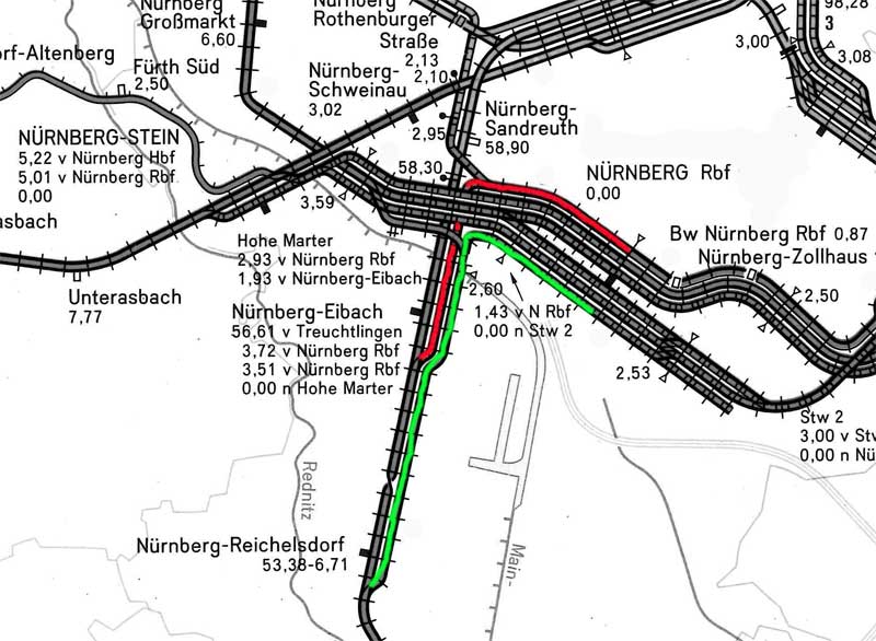 Nürnberg Rbf 0,0 - Nürnberg-Eibach 3,51 - Nürnberg-Reichelsdorf 6,71 (Südgleis)