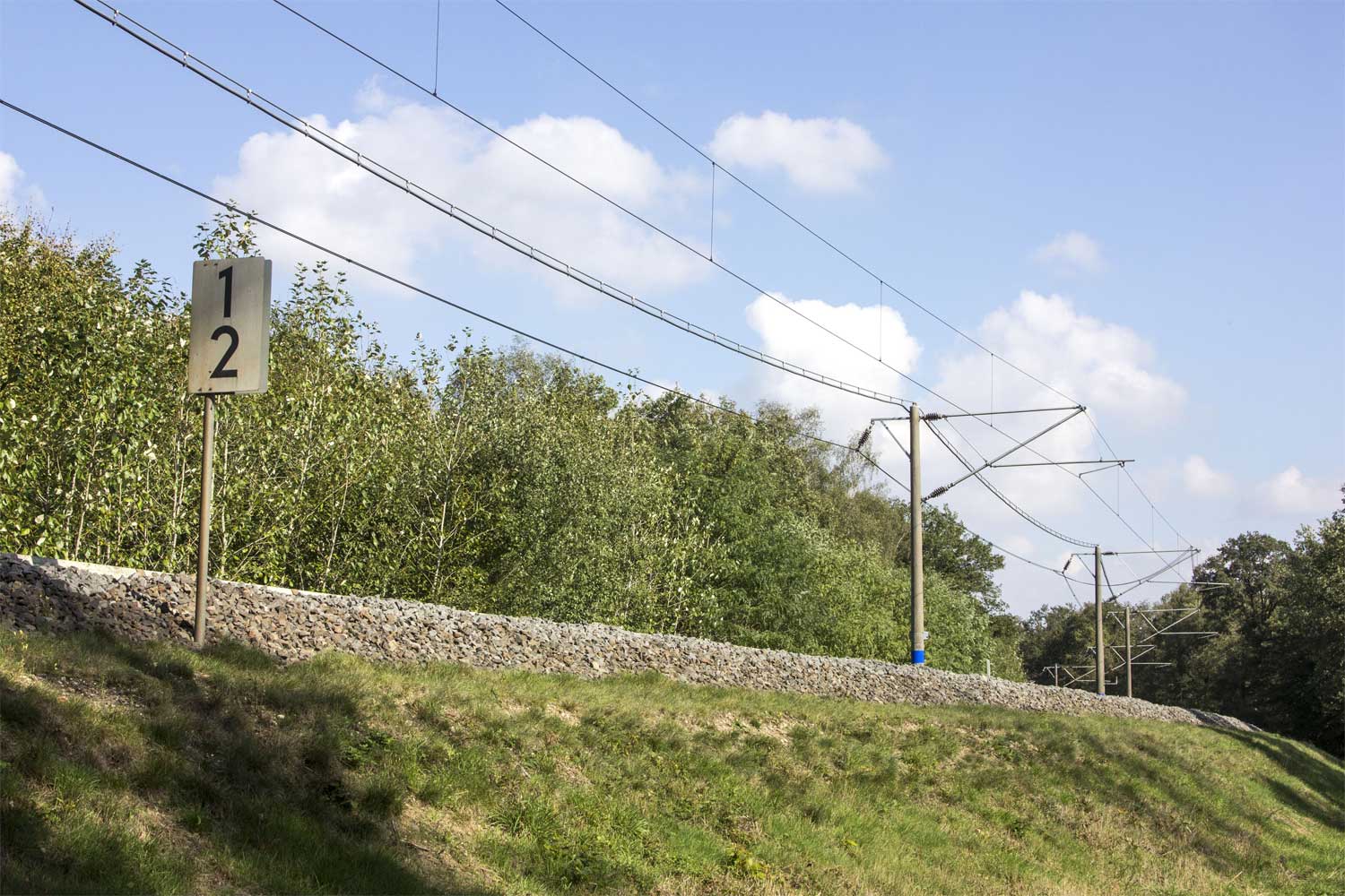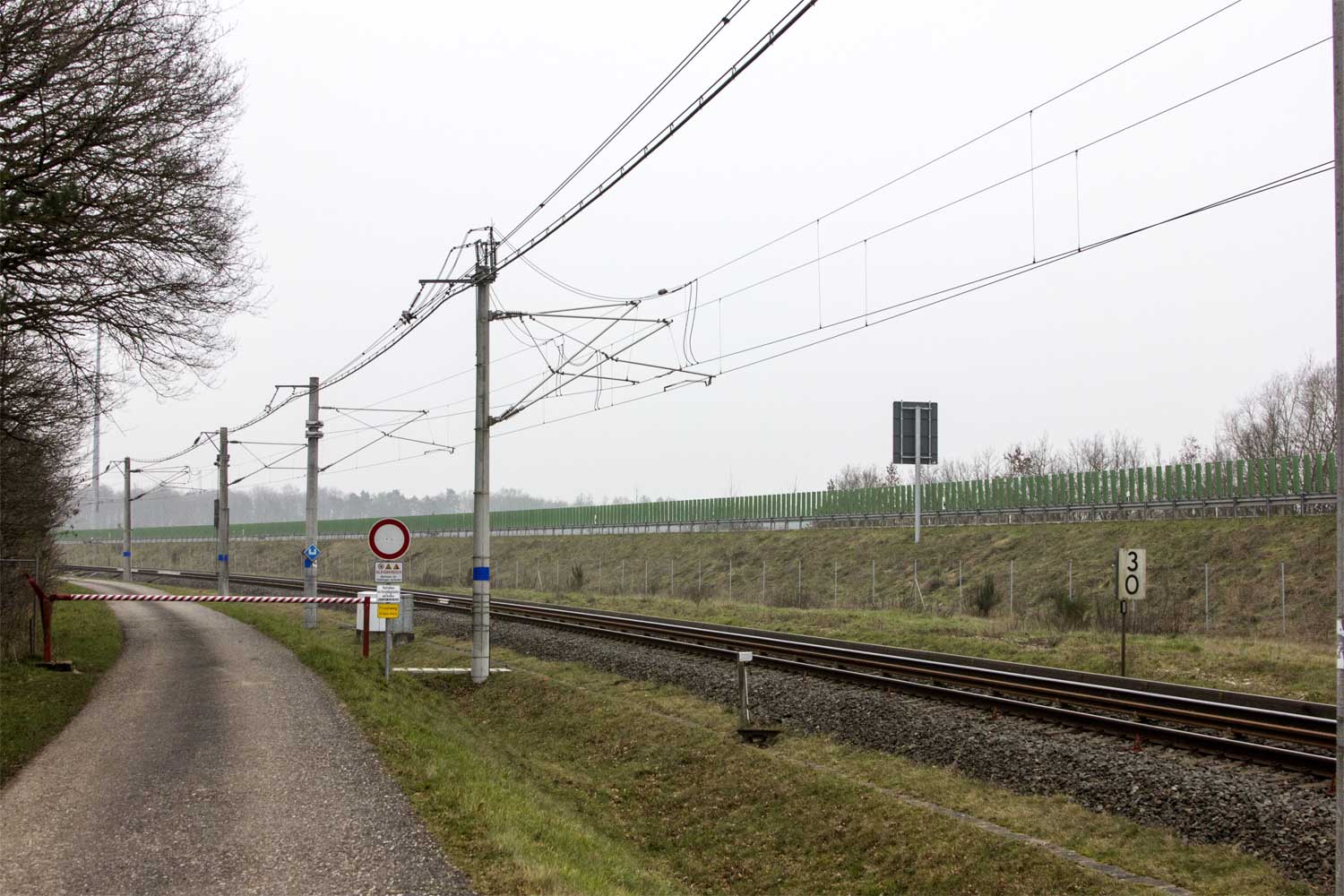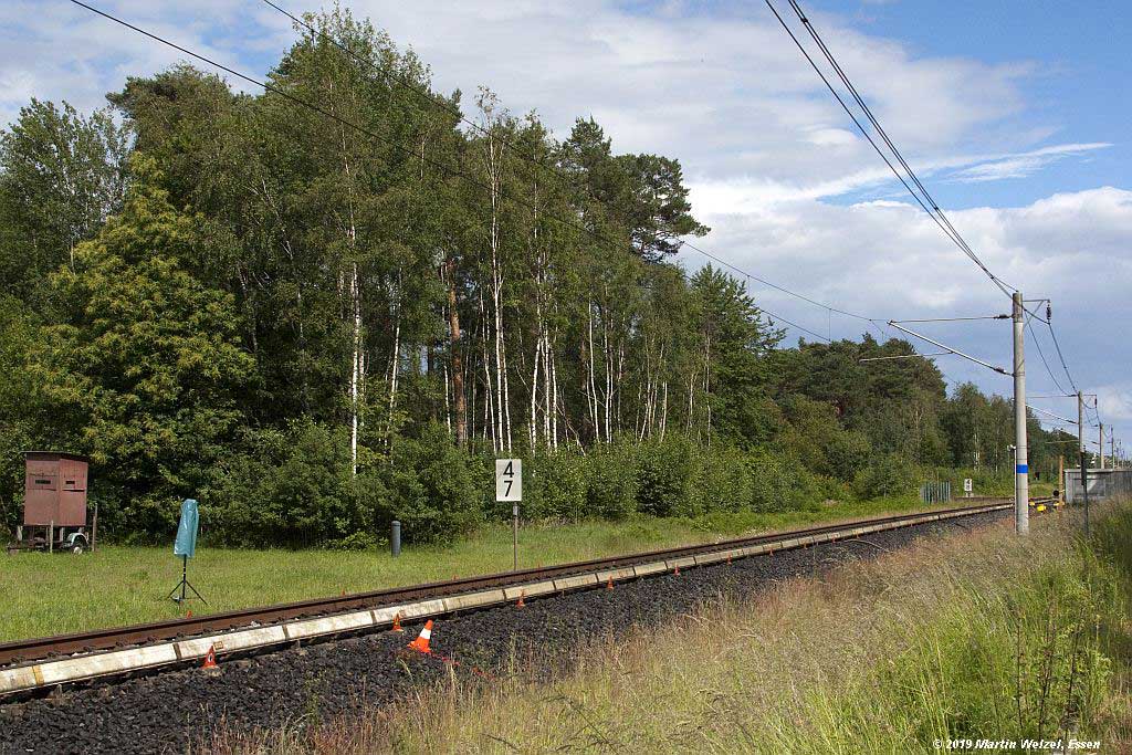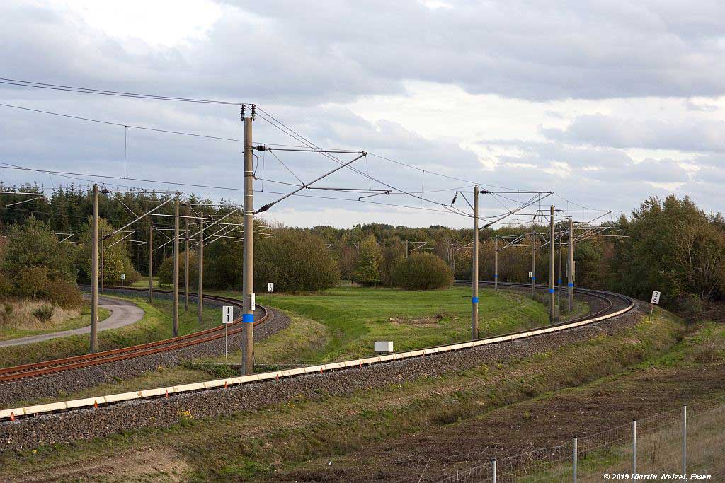 km 1,1; 1,0 usw. gehören zur mittlerweile abgeklemmten inneren Kurve mit Gegenbogen zur Prüfung von Neigetechnikfahrzeugen