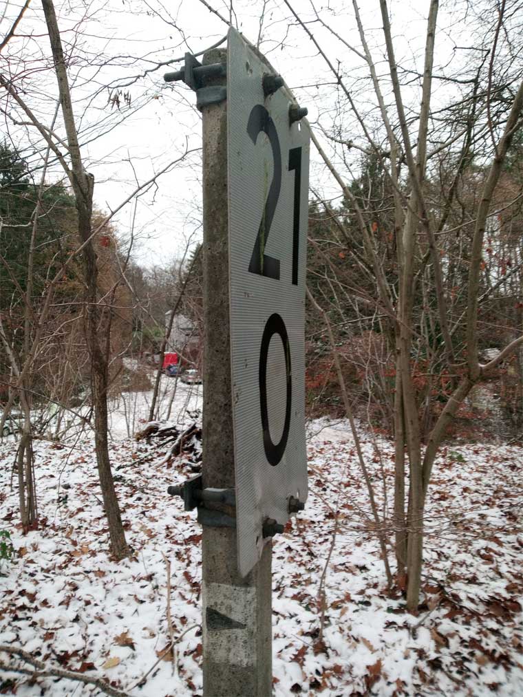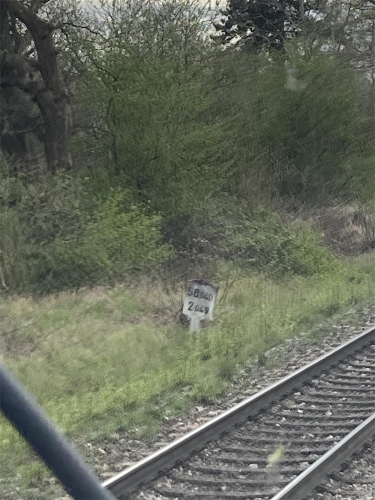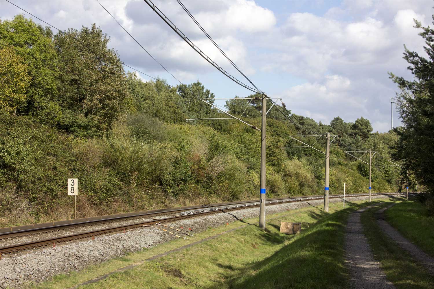km 1,1; 1,0 usw. gehören zur mittlerweile abgeklemmten inneren Kurve mit Gegenbogen zur Prüfung von Neigetechnikfahrzeugen