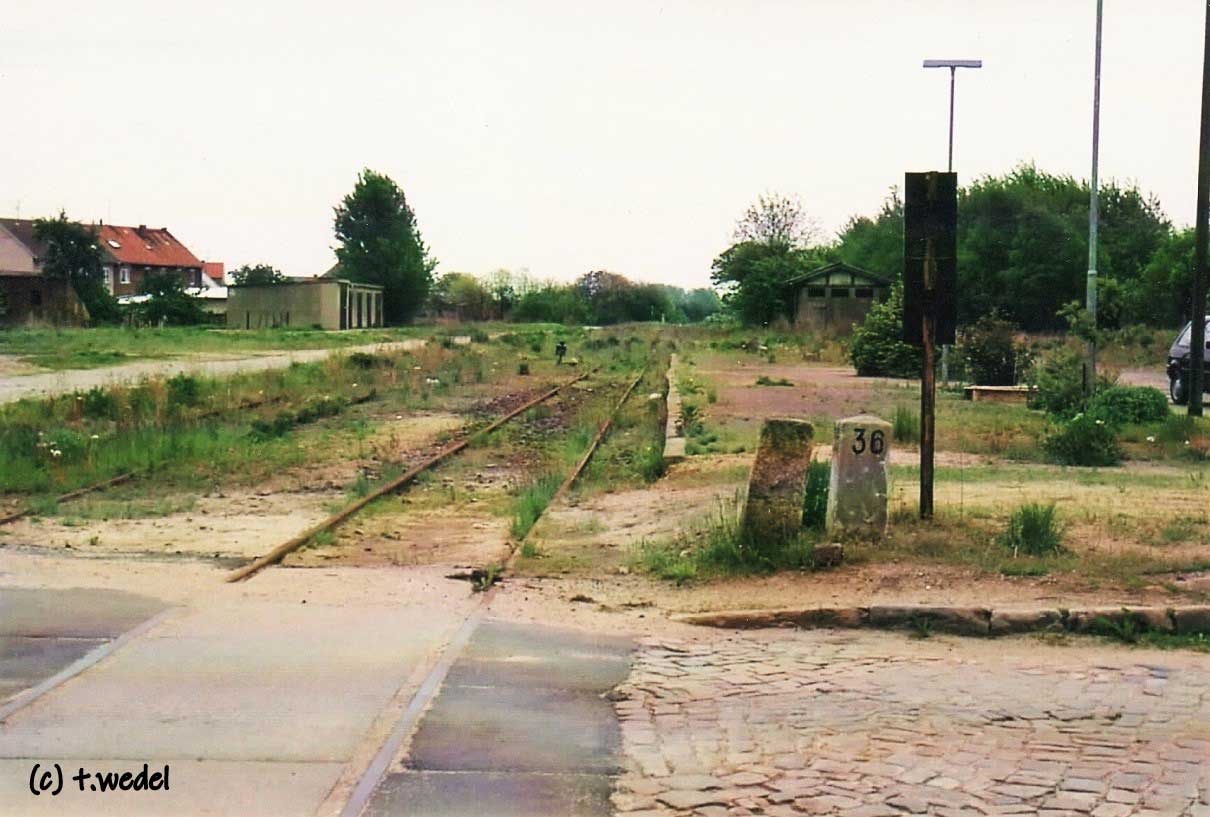 km 0,0 der Strecke Salzwedel 0,0 Streckenunterbrechung - Grenze DDR/BRD 6,13 - Wustrow (Han) 10,66 - Dannenberg Ost 36,24 | ||