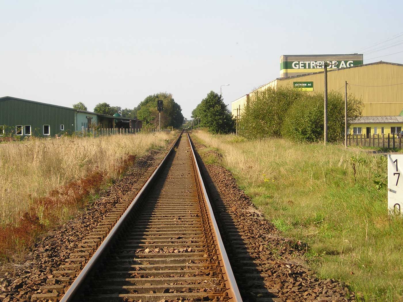 | Schwerin (Meckl) Gbf | 1,18 | km 67,54 der Strecke Dömitz 0,0 - Ludwigslust 30,28 - Holthusen 56,82 - Schwerin (Meckl) Hbf 66,36 - Bad Kleinen 82,80 - Wismar 98,43 |
