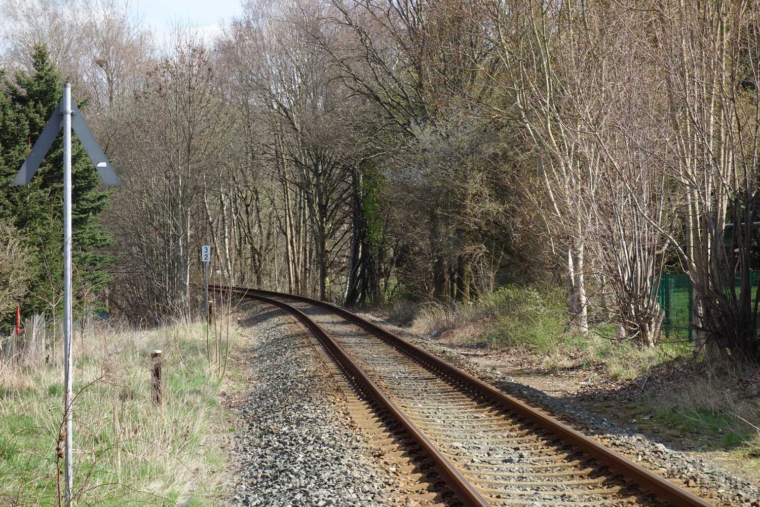 Rechts die Strecke Zwönitz 0,02 - Stollberg (Sachs) 16,59 - Chemnitz Süd 37,96 (ZC) bei km 17,3