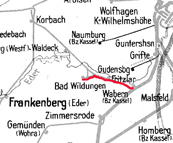 Bad Wildungen 17,22 km 0,0 der Strecke Bad Wildungen 0,0 - Korbach Süd 38,48 - Korbach 39,56 - Brilon Wald 69,51