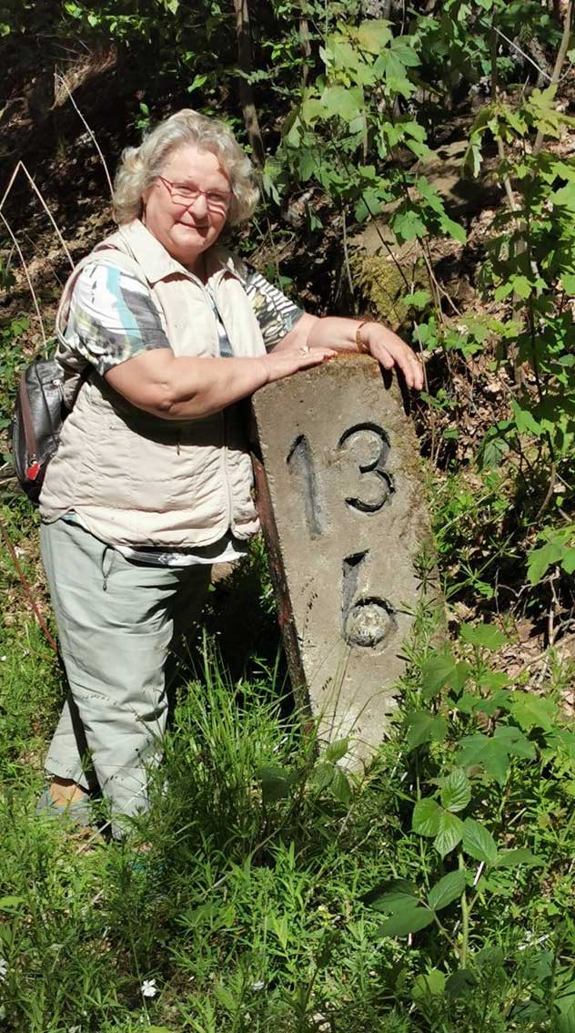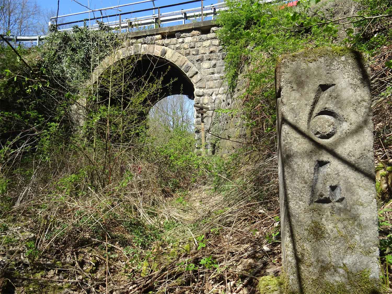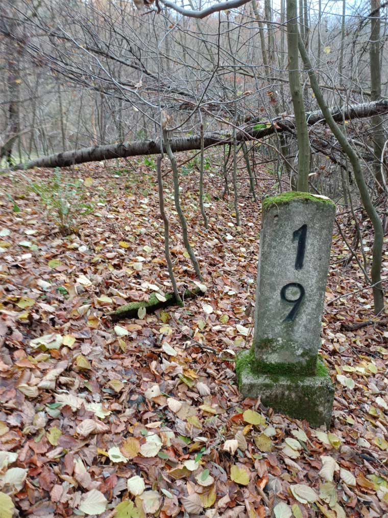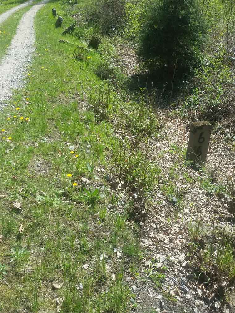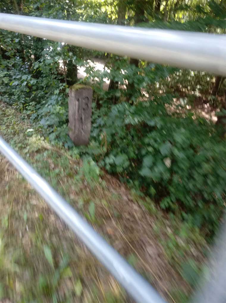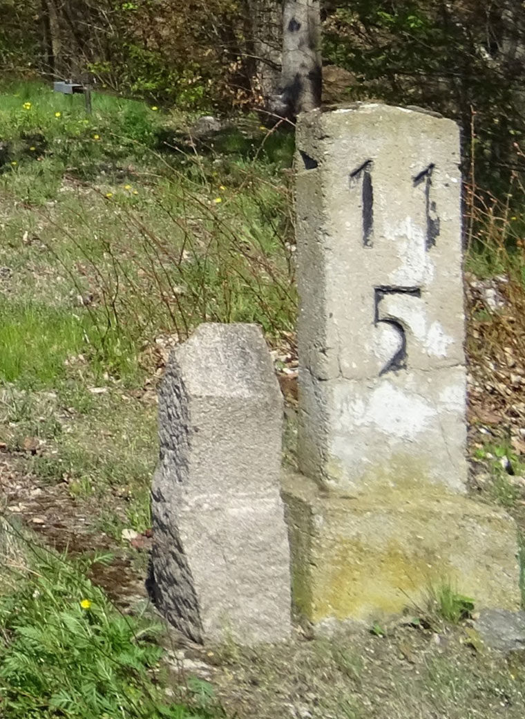 Links alter Hektometerstein, rechts neuerer Kilometerstein