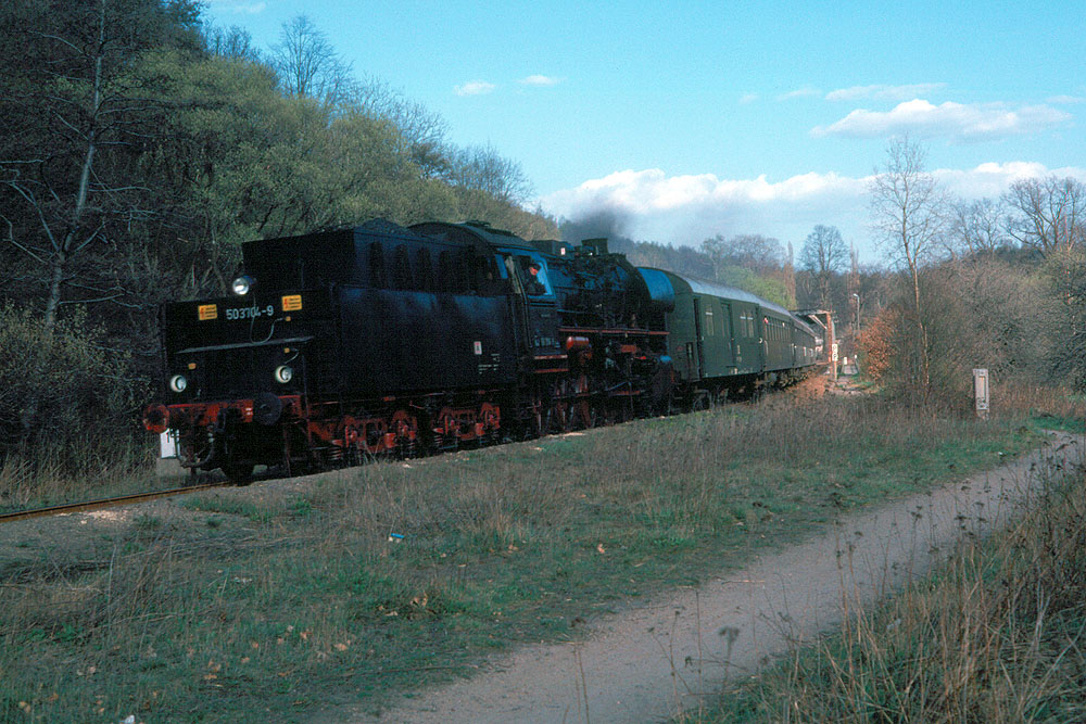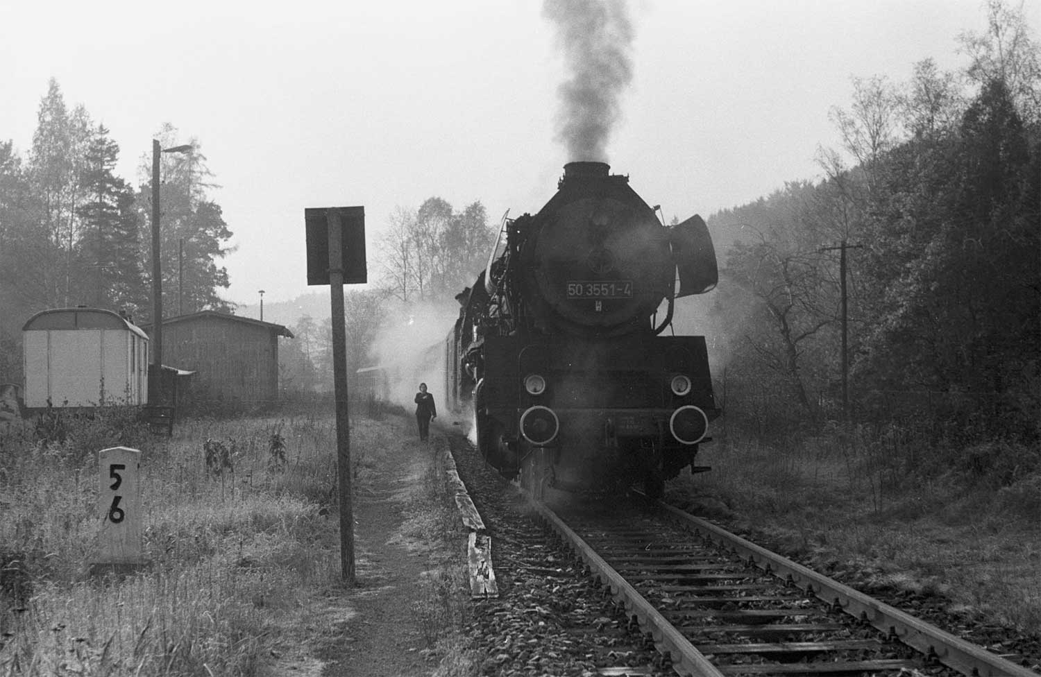 50 3551 (Bw Glauchau, Einsatzstelle Rochlitz) befördert den P 17754 von Karl-Marx-Stadt nach Rochlitz