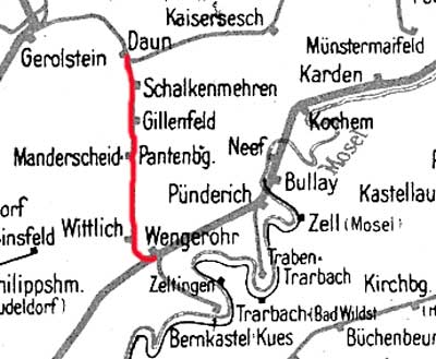 Daun | 40,72 | km 71,30 der Strecke Andernach 0,02 - Mayen Ost 23,43 - Daun 71,30 - Gerolstein 94,14 |
