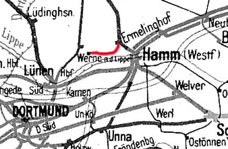 Werne (a d Lippe) Ost 0,0 Gleisanschluss zur Zeche Werne und Zeche Königsborn