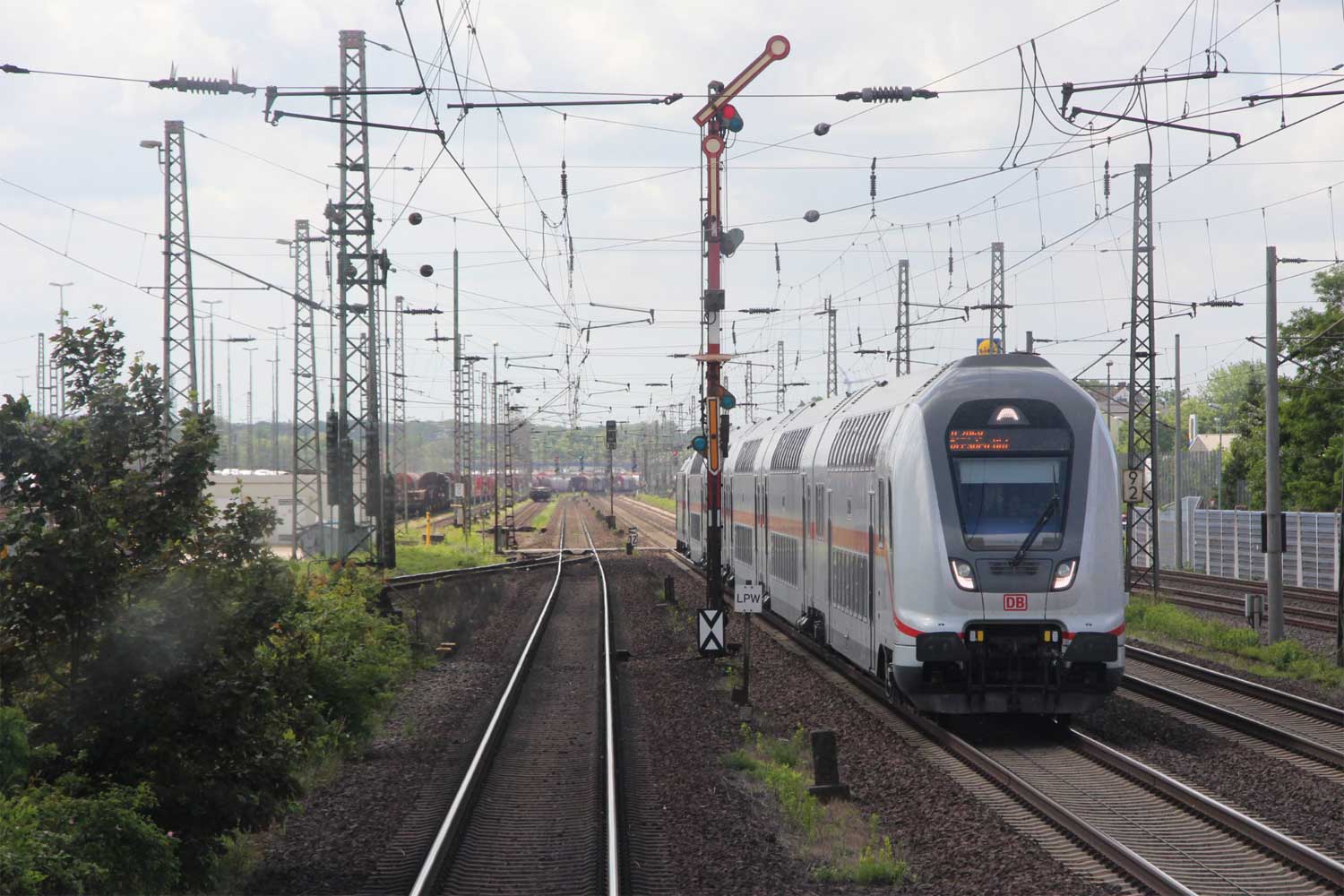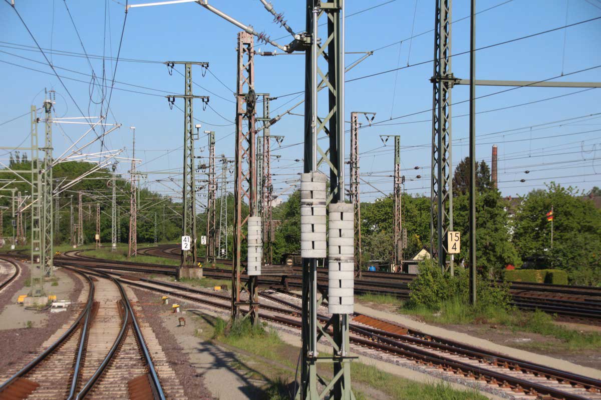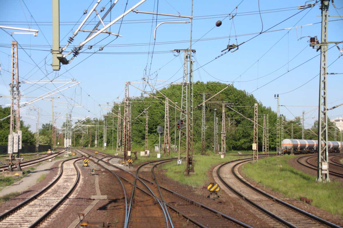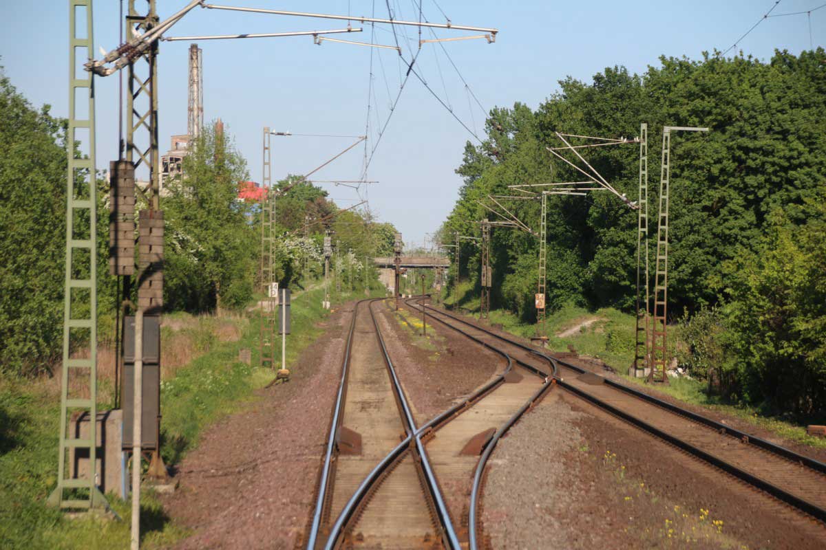 Mittig das Gleis der Strecke Hannover Hbf, W 481, km -0,399 - Lehrte, W 315, km 15,437 (1734)