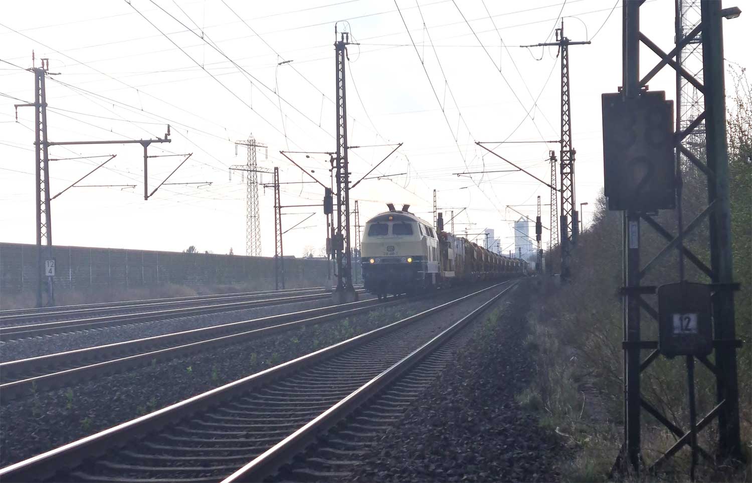 Rechts die beiden Gleise der Strecke Hannover Hbf 0,0 - Braunschweig Hbf 60,986 (1730) mit km 12,6