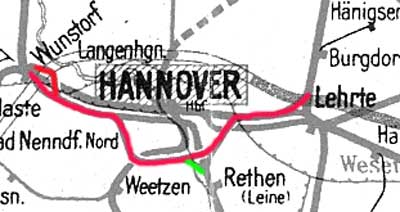 Wunstorf 0,0 - Hannover-Linden 22,55 - Lehrte Vbf 40,98 - Lehrte Stw. Ln 43,31 (Güterumgehungsbahn)