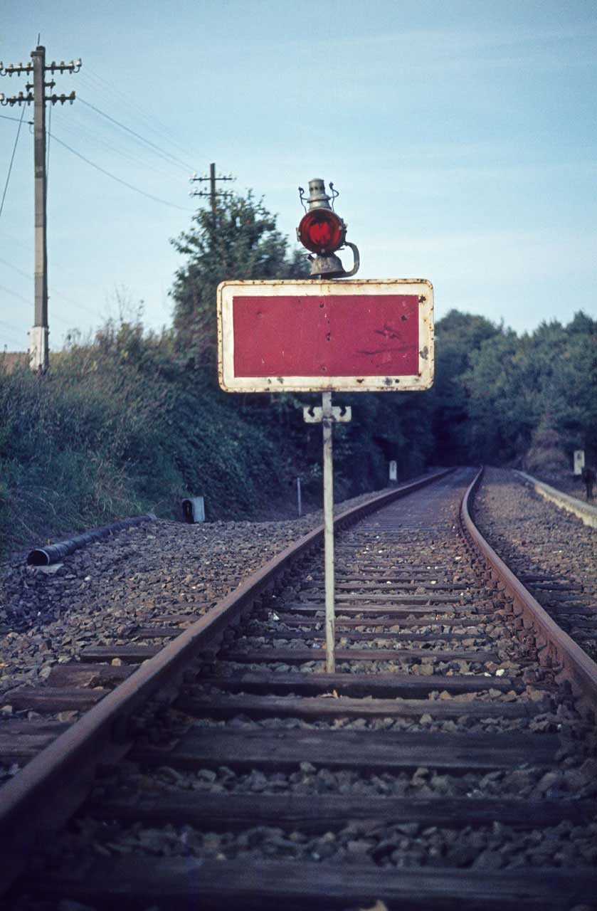 Die Tafel gehört zum rechts unten liegendem Gleis