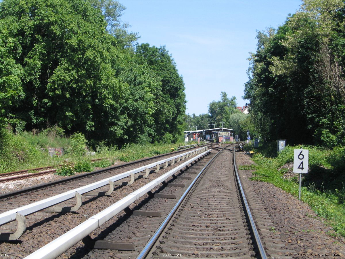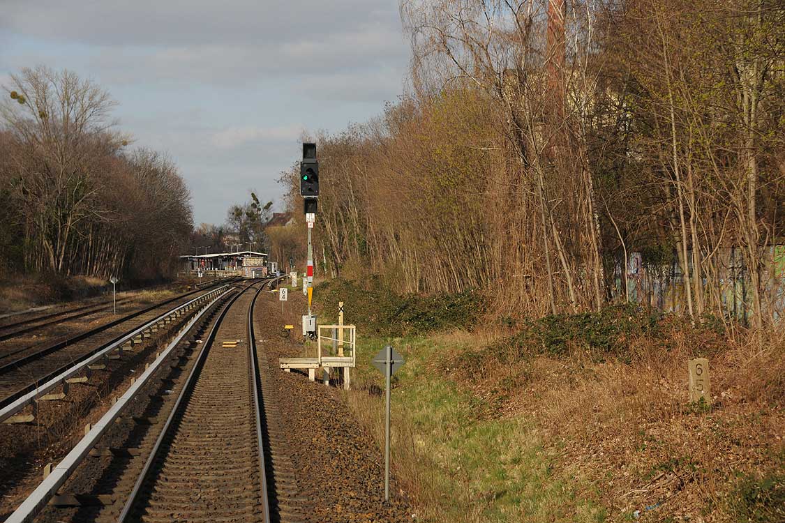 Blick Richtung Berlin Links das ehemalige Gleis der Stammbahn