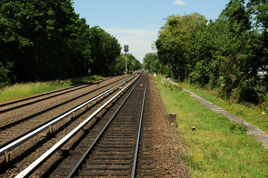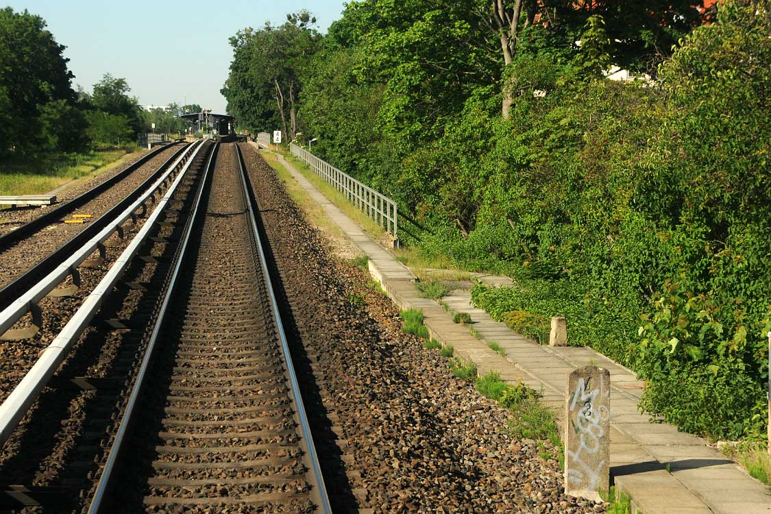 km 17,0 (Tafel und Stein) in Nikolassee (Wannseebahn) - Blick Richtung