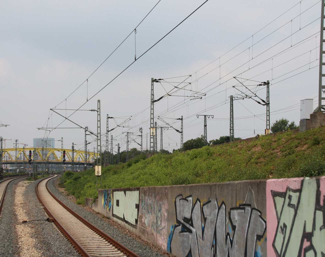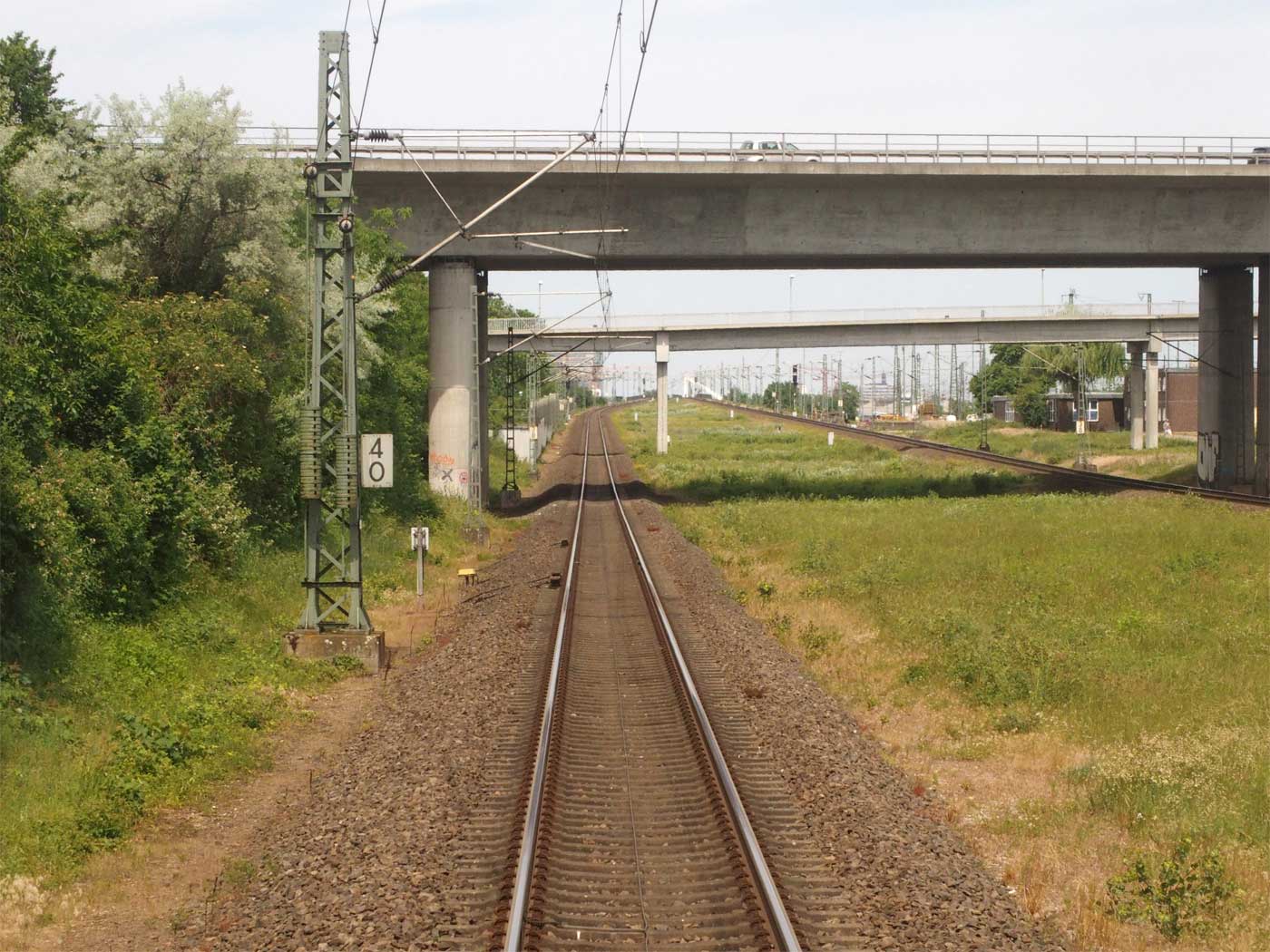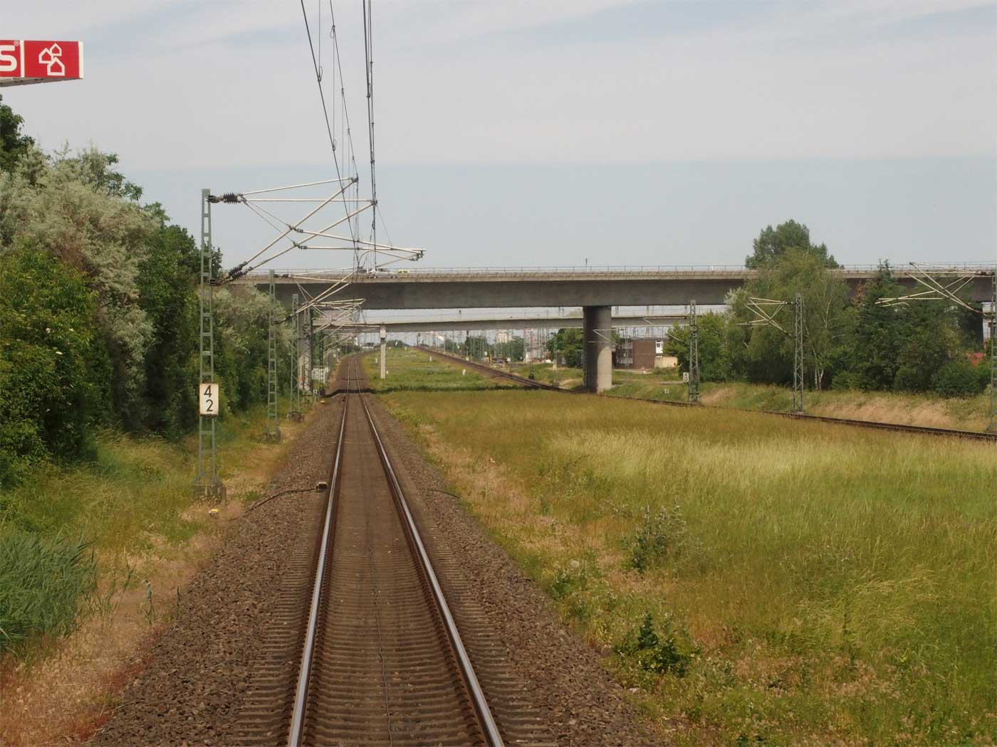 km 2,0 (oben) zwischen Mannheim Hbf und Üst Mannheim Pfingstberg - Blick Richtung Mannheim
