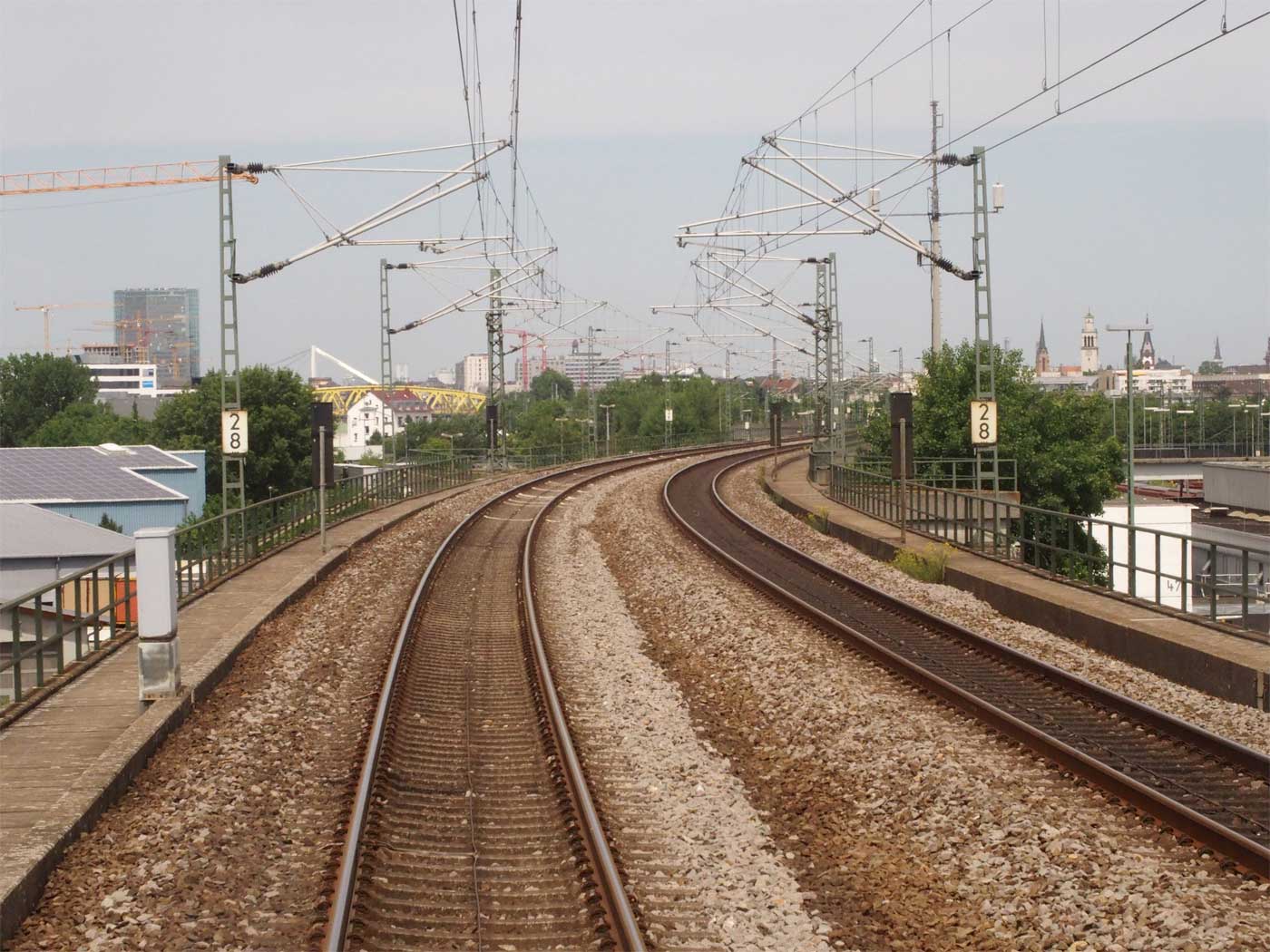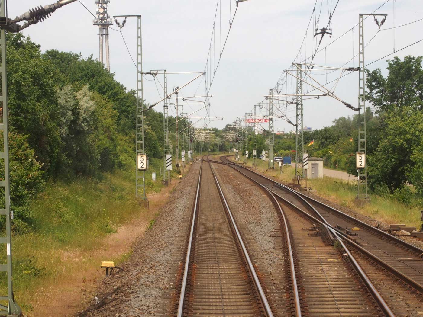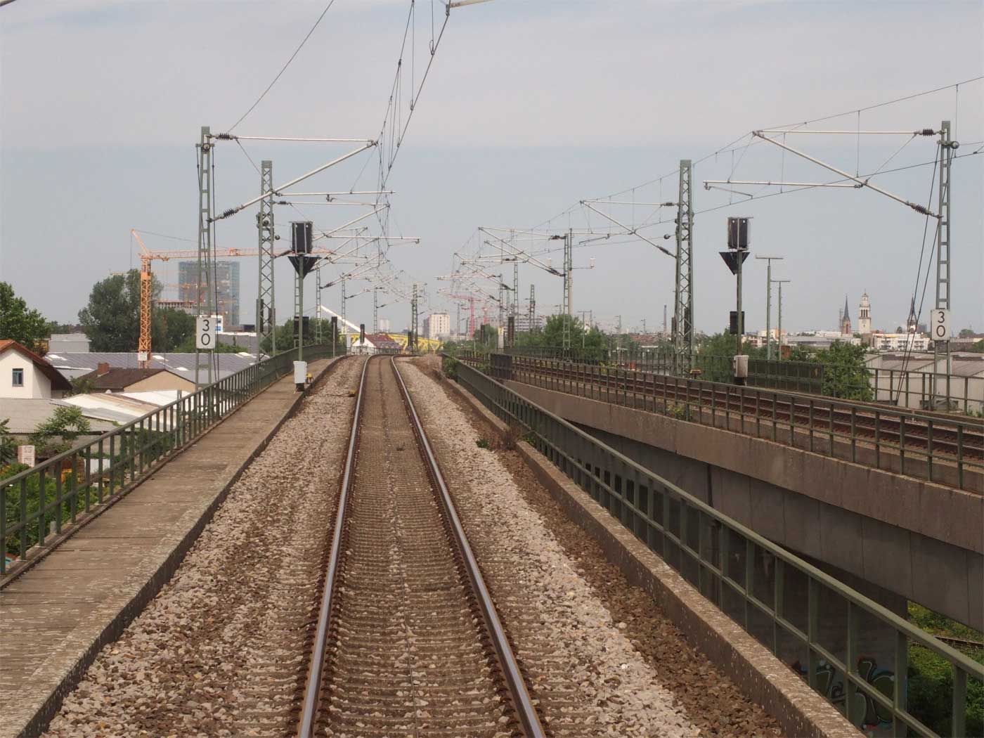 km 4,2 zwischen Mannheim Hbf und Üst Mannheim Pfingstberg - Blick Richtung Mannheim