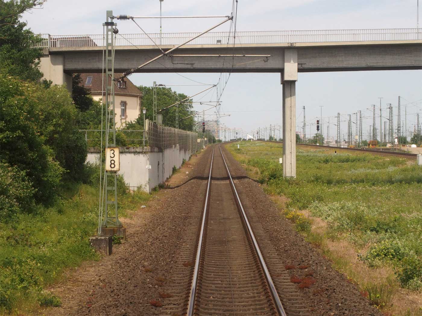 km 3,8 zwischen Mannheim Hbf und Üst Mannheim Pfingstberg - Blick Richtung Mannheim