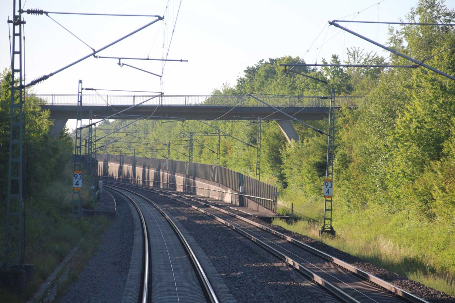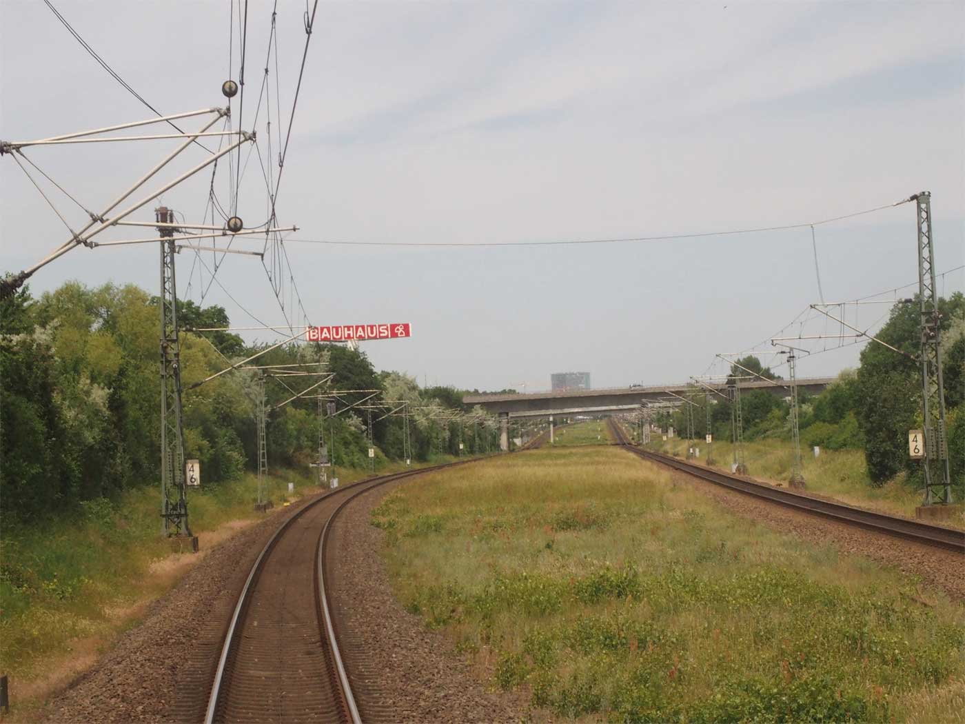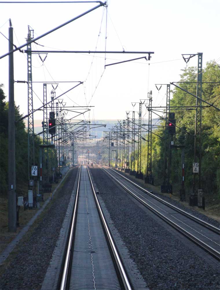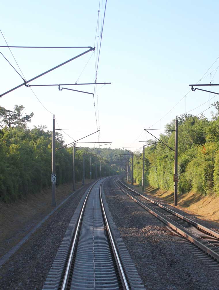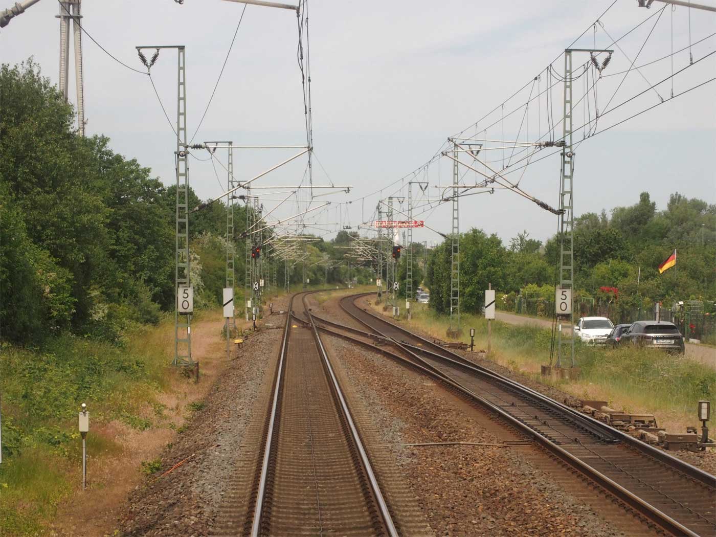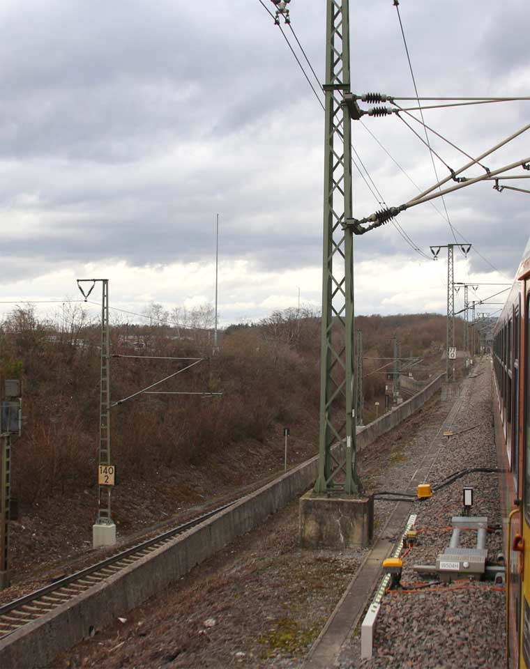 Ganz rechts das Gegenrichtungsgleis der Strecke