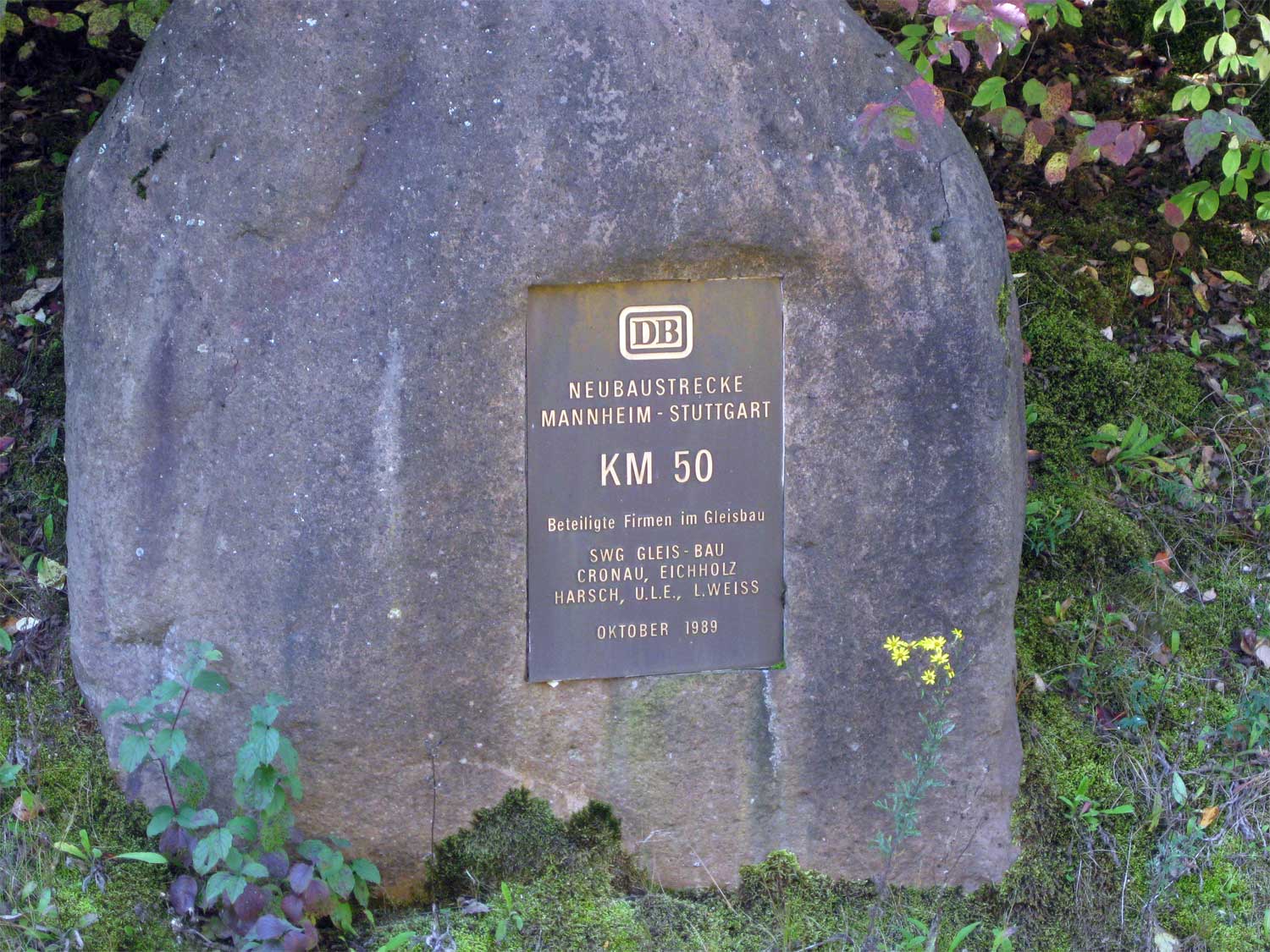 An dieser Weiche endet die Kilometrierung des Richtungsgleises der NBS Mannheim - Stuttgart