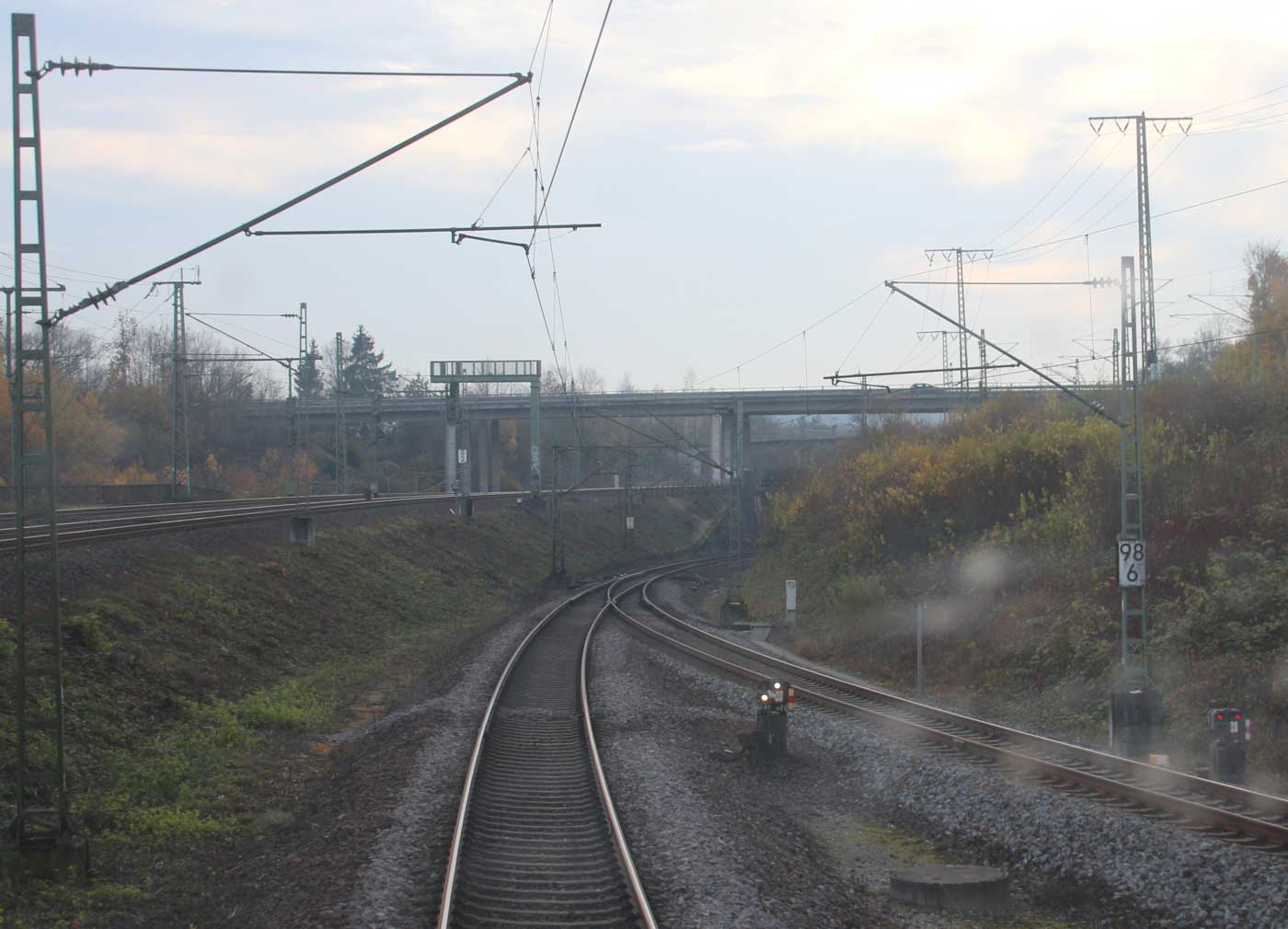 km 98,6 (Richtungsgleis) am Abzw Stuttgart-Zuffenhausen - Blick Richtung Stuttgart
