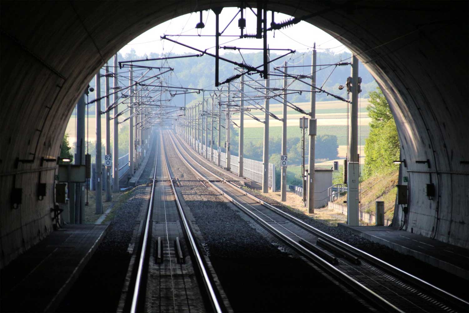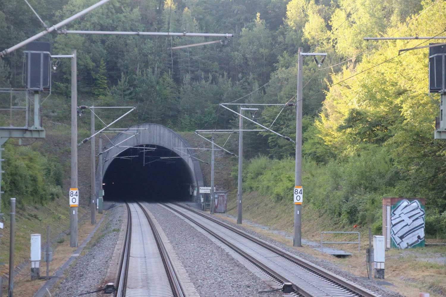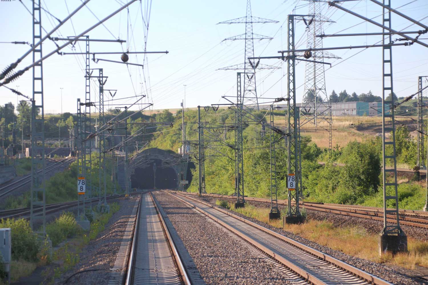 Im Hintergrund das Nordwestportal des Rollenberg-Tunnels