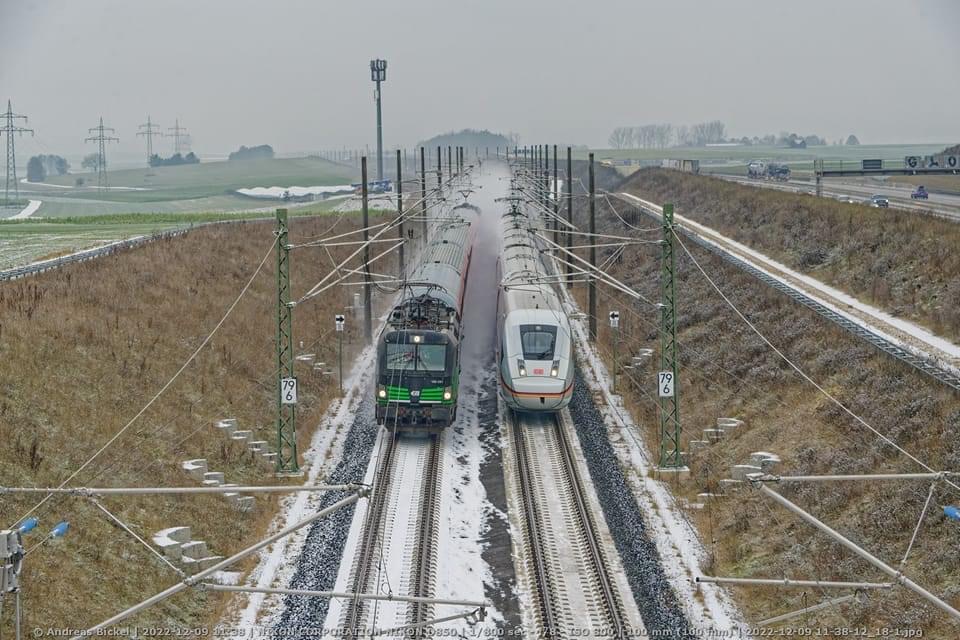 Paralellfahrt ELL 193 231 unf ICE 412 057