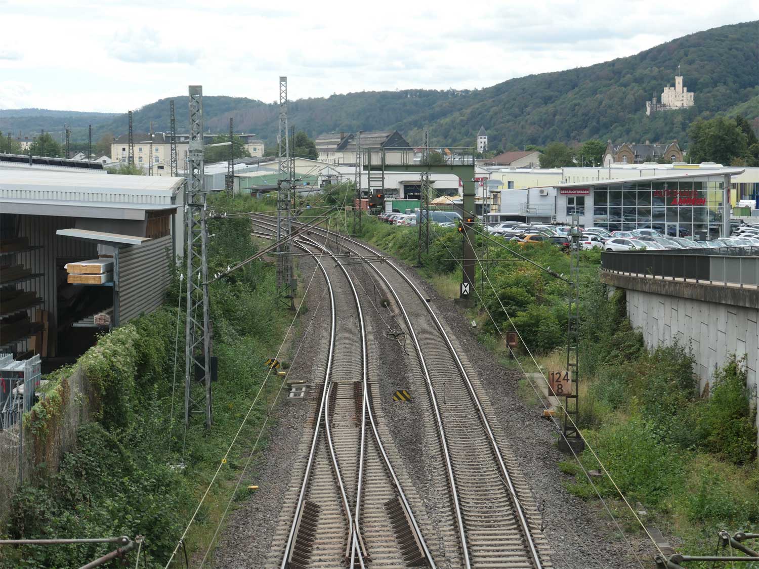 km 121,6 in Oberlahnstein - Blick zum ehemaligen Gbf