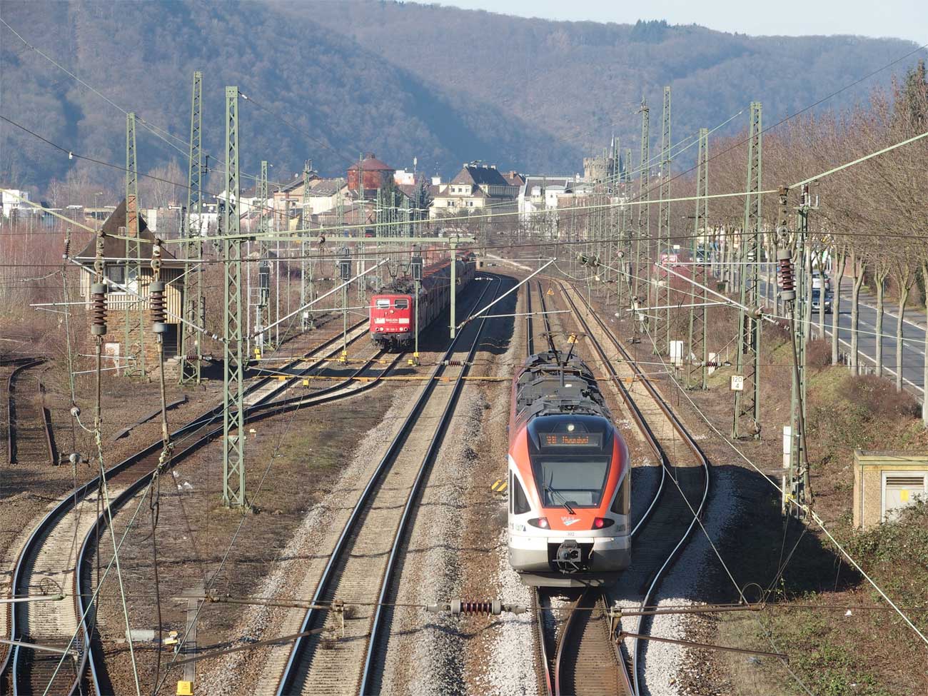 km 121,8 und km 121,9 in Oberlahnstein - Blick Richtung Frankfurt