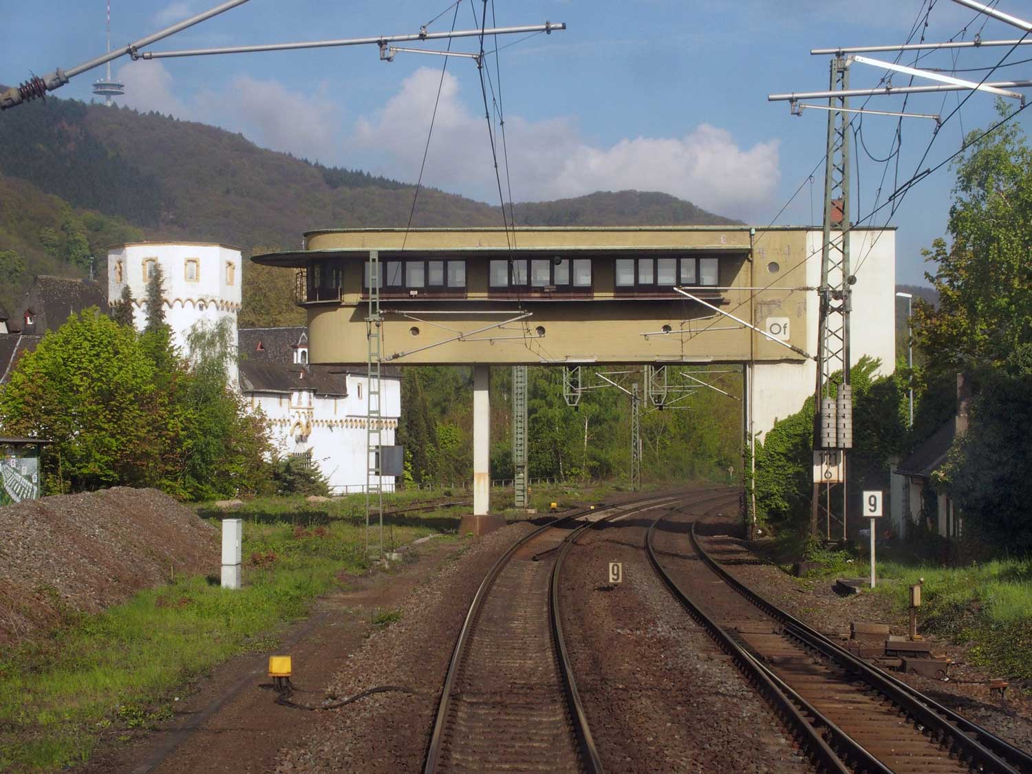 km 121,6 in Oberlahnstein und Brückenstellwerk Of (früher OB)