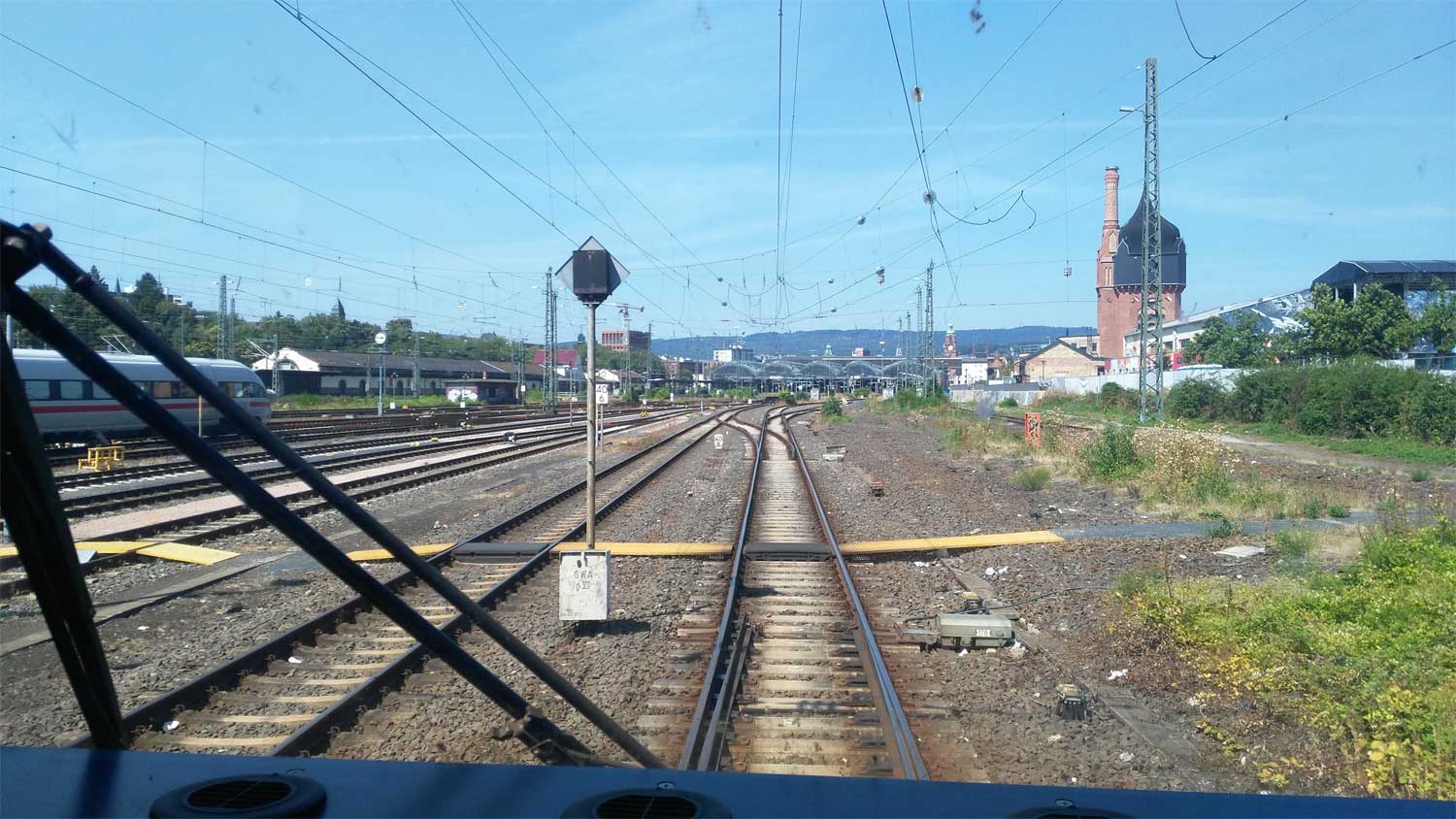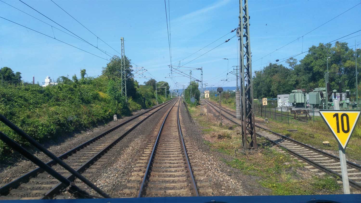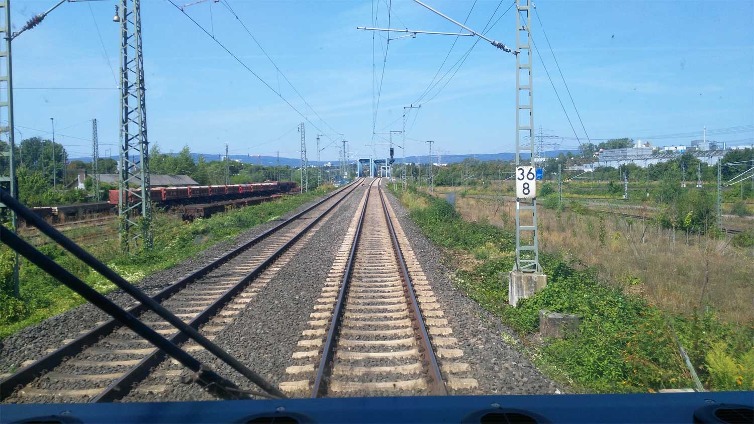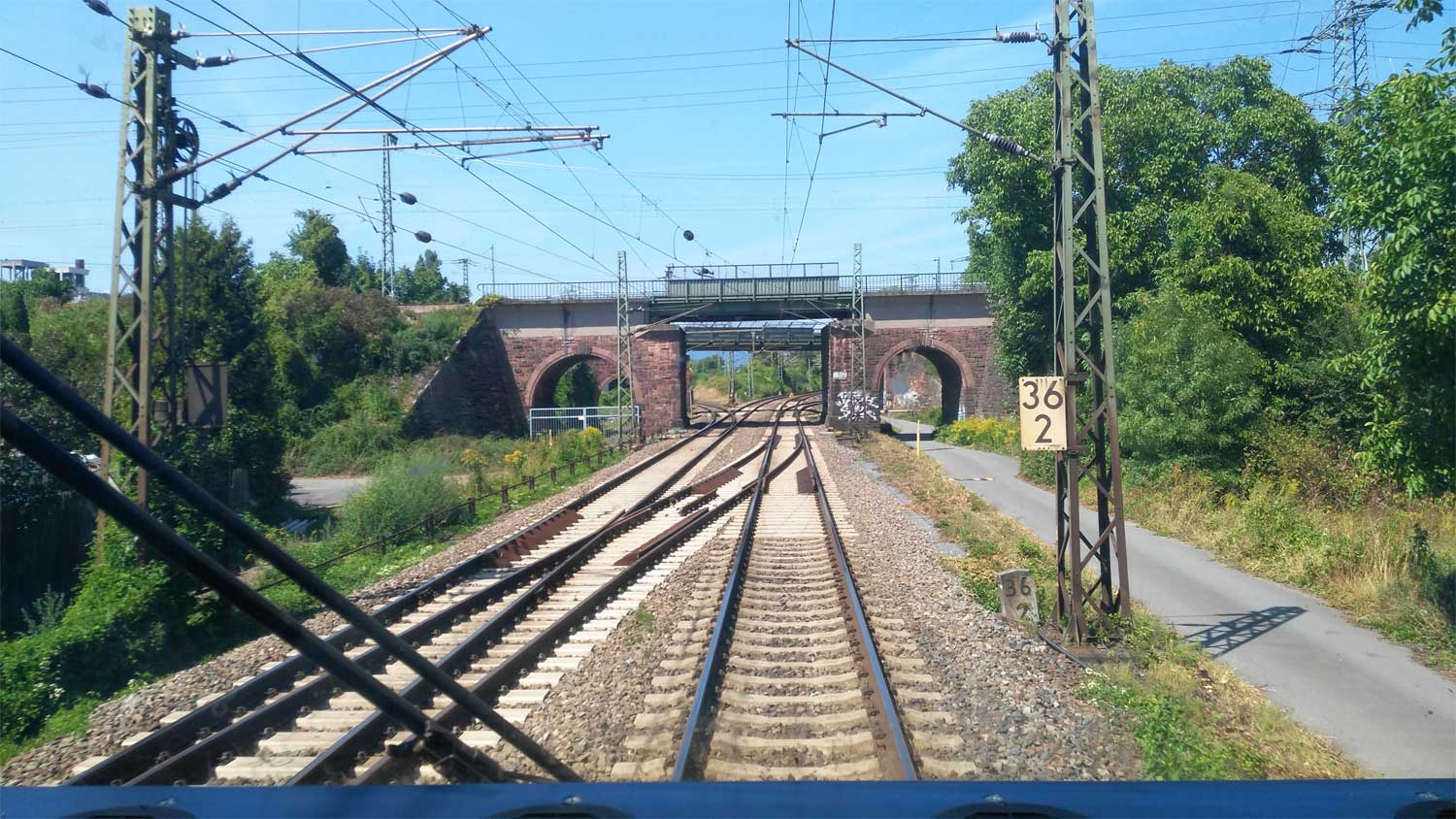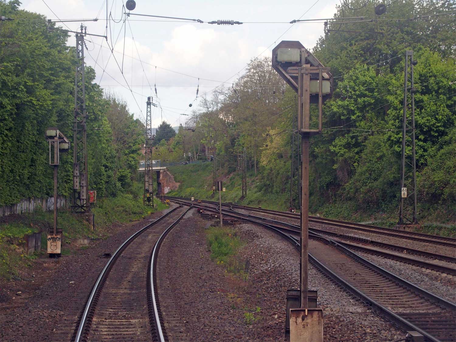 km 39,4 (Richtungsgleis der Strecke 3603) zwischen Abzw Stellwerk I (bei Wiesbaden Ost) und Wiesbaden Hbf - Blick Richtung Wiesbaden Hbf