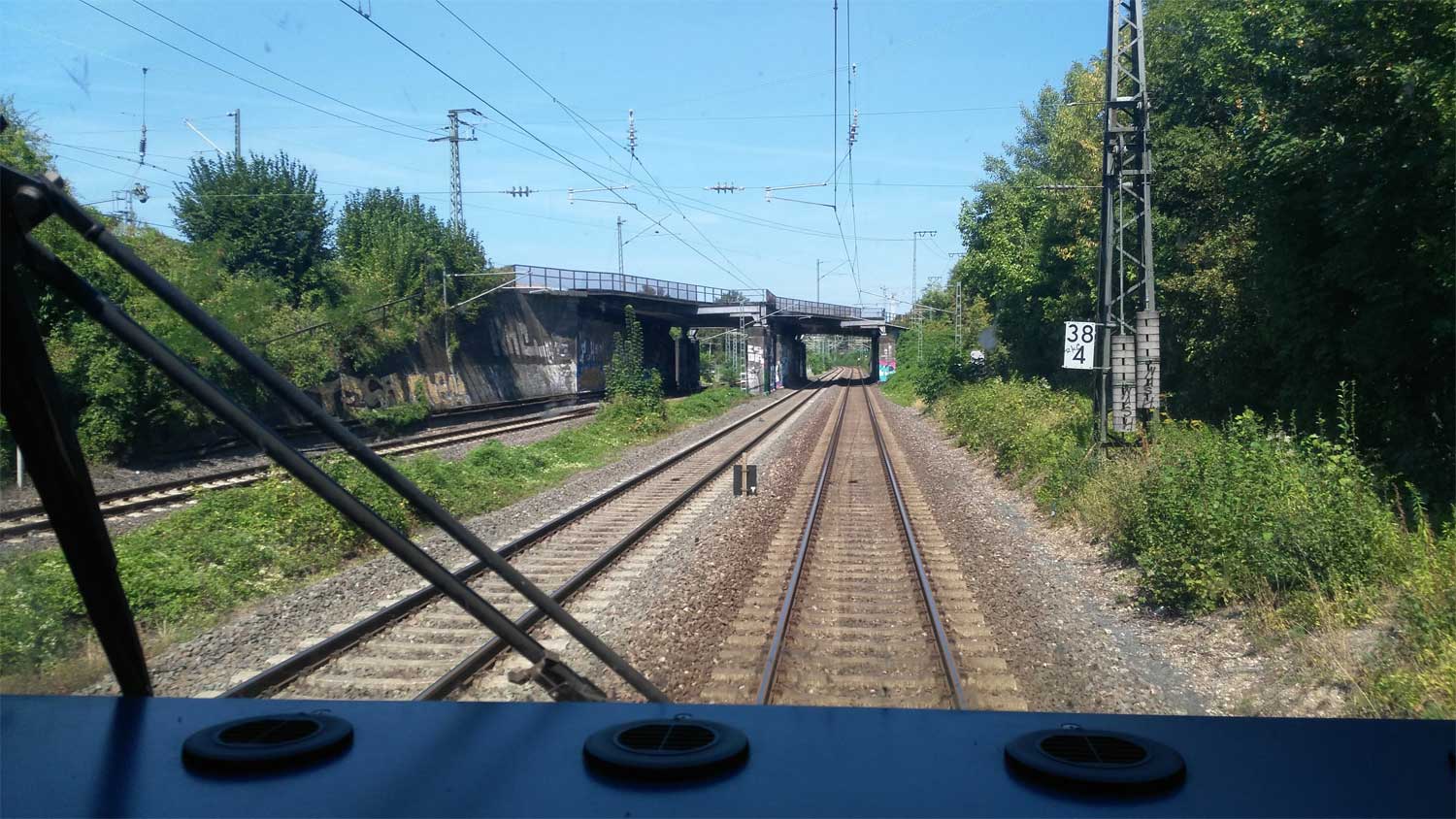 km 38,4 (Richtungsgleis der Strecke 3603) zwischen Abzw Stellwerk I (bei Wiesbaden Ost) und Wiesbaden Hbf - Blick Richtung Wiesbaden Hbf